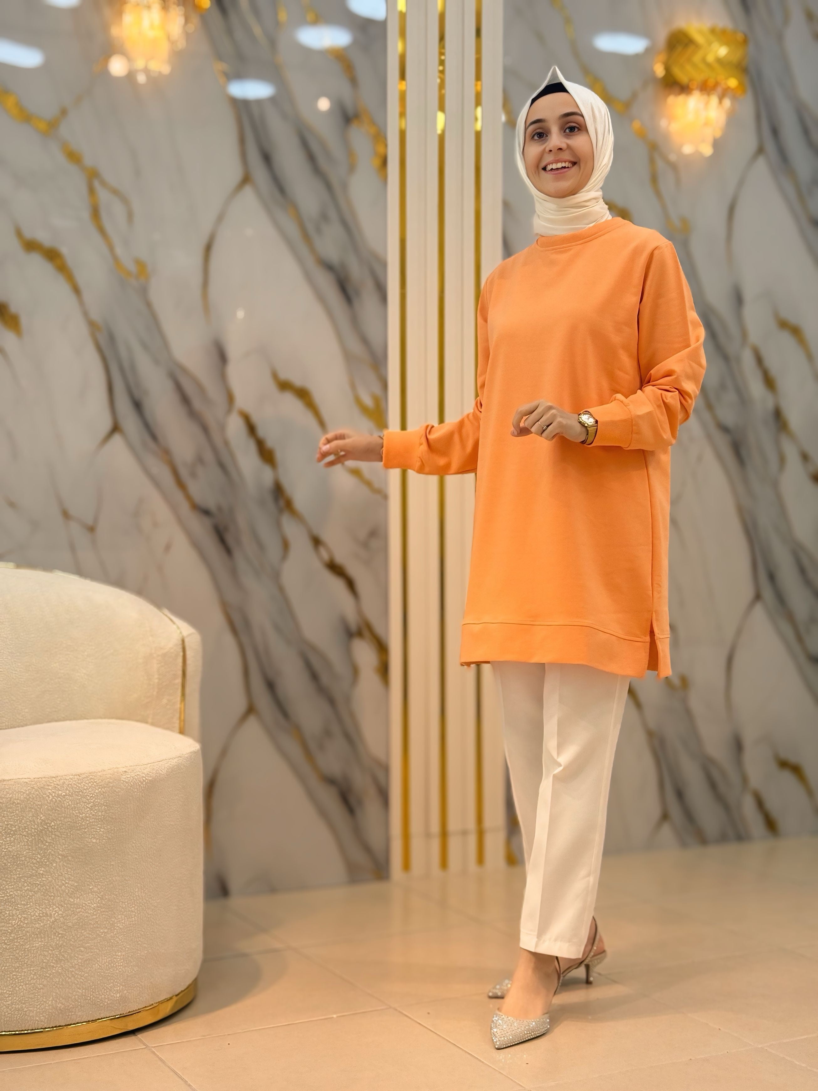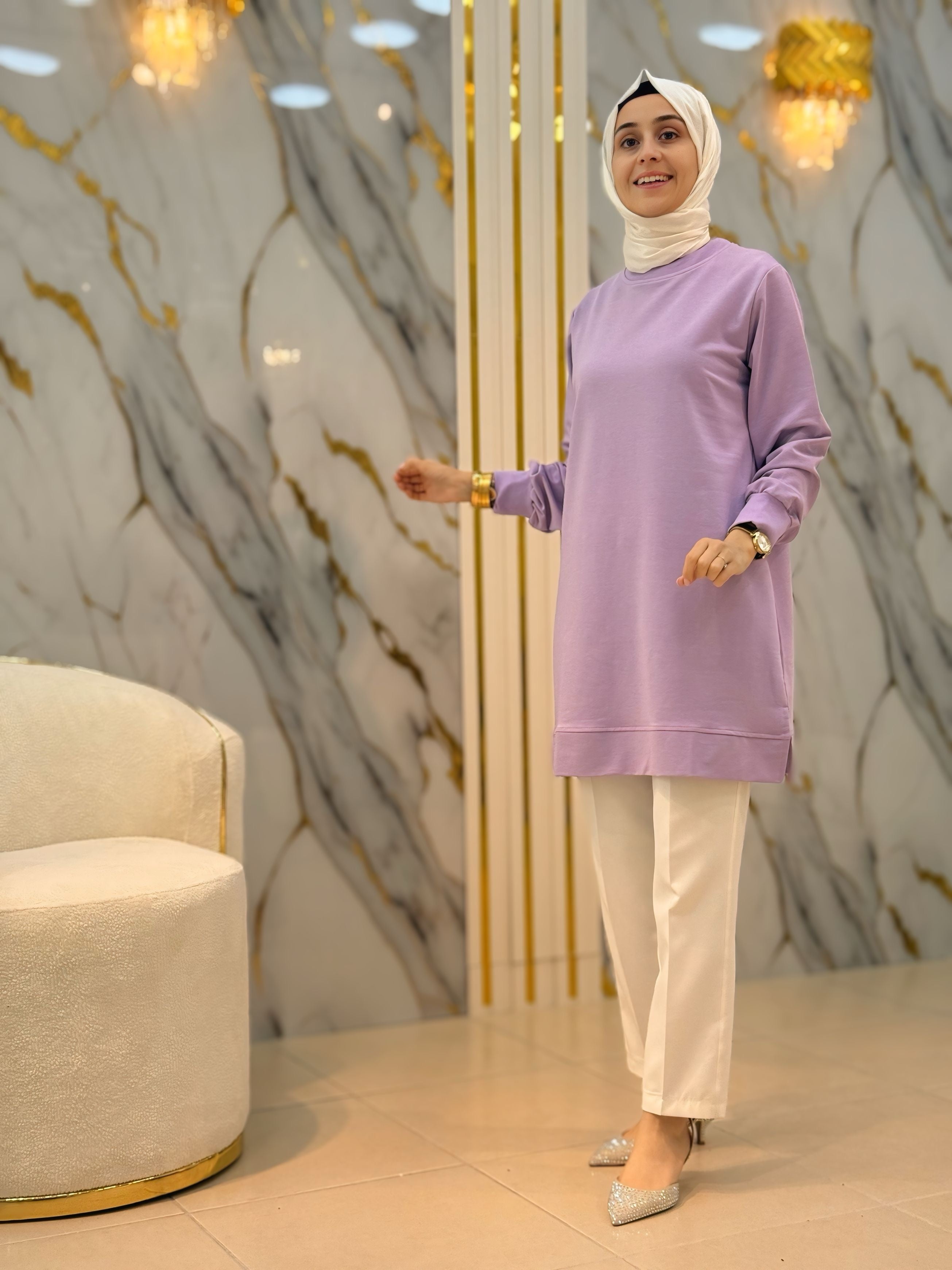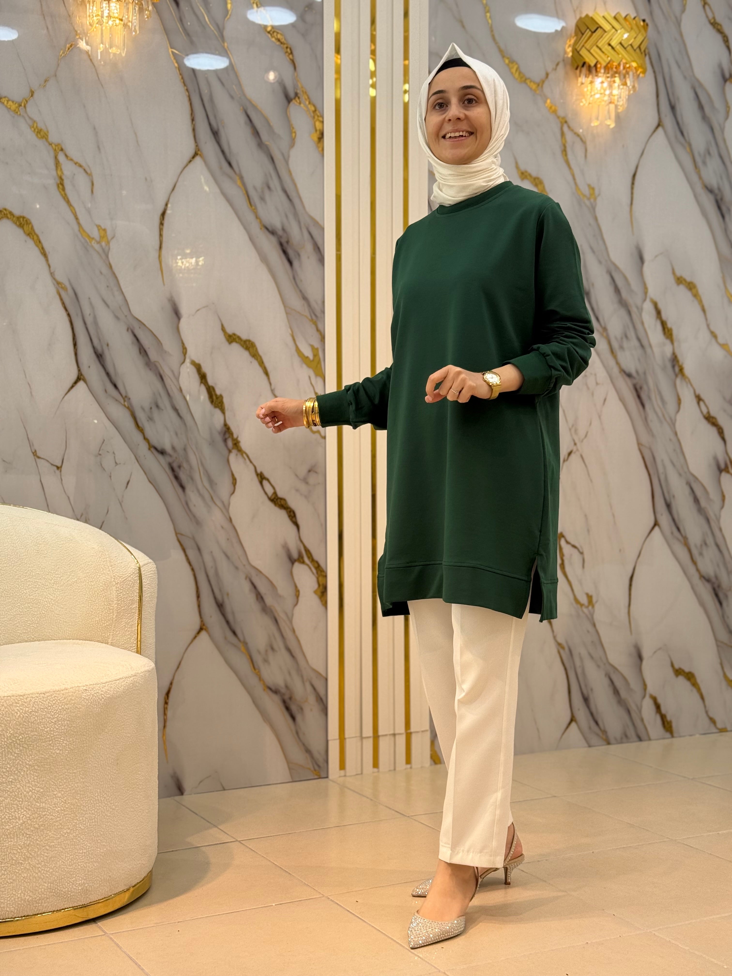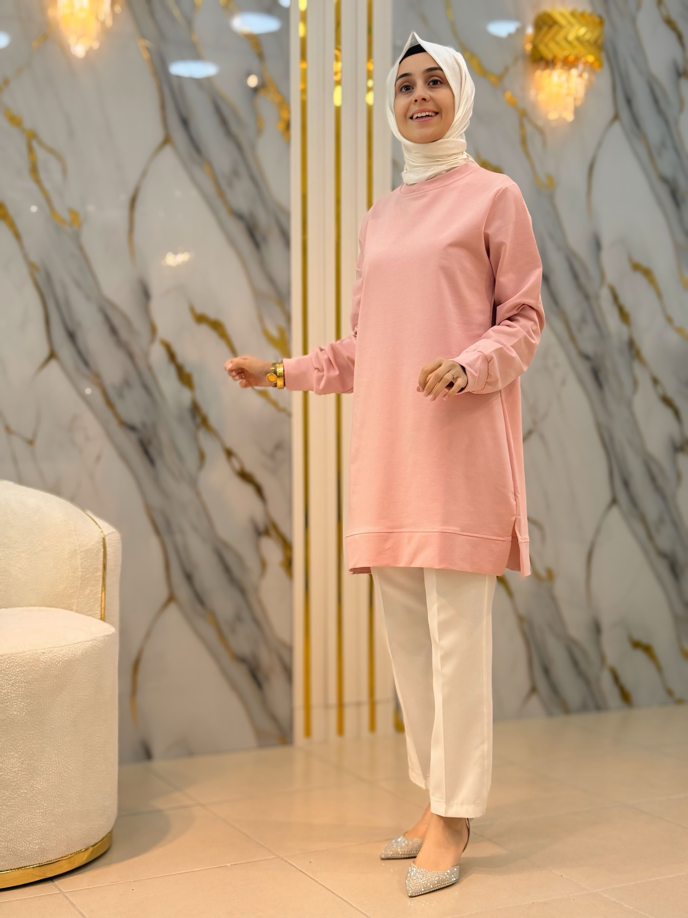 NY MEHLİKA ÖNÜ ÇİZGİ DETAY YIRTMAÇLI UZUN SOĞUK İP TUNİK 35244