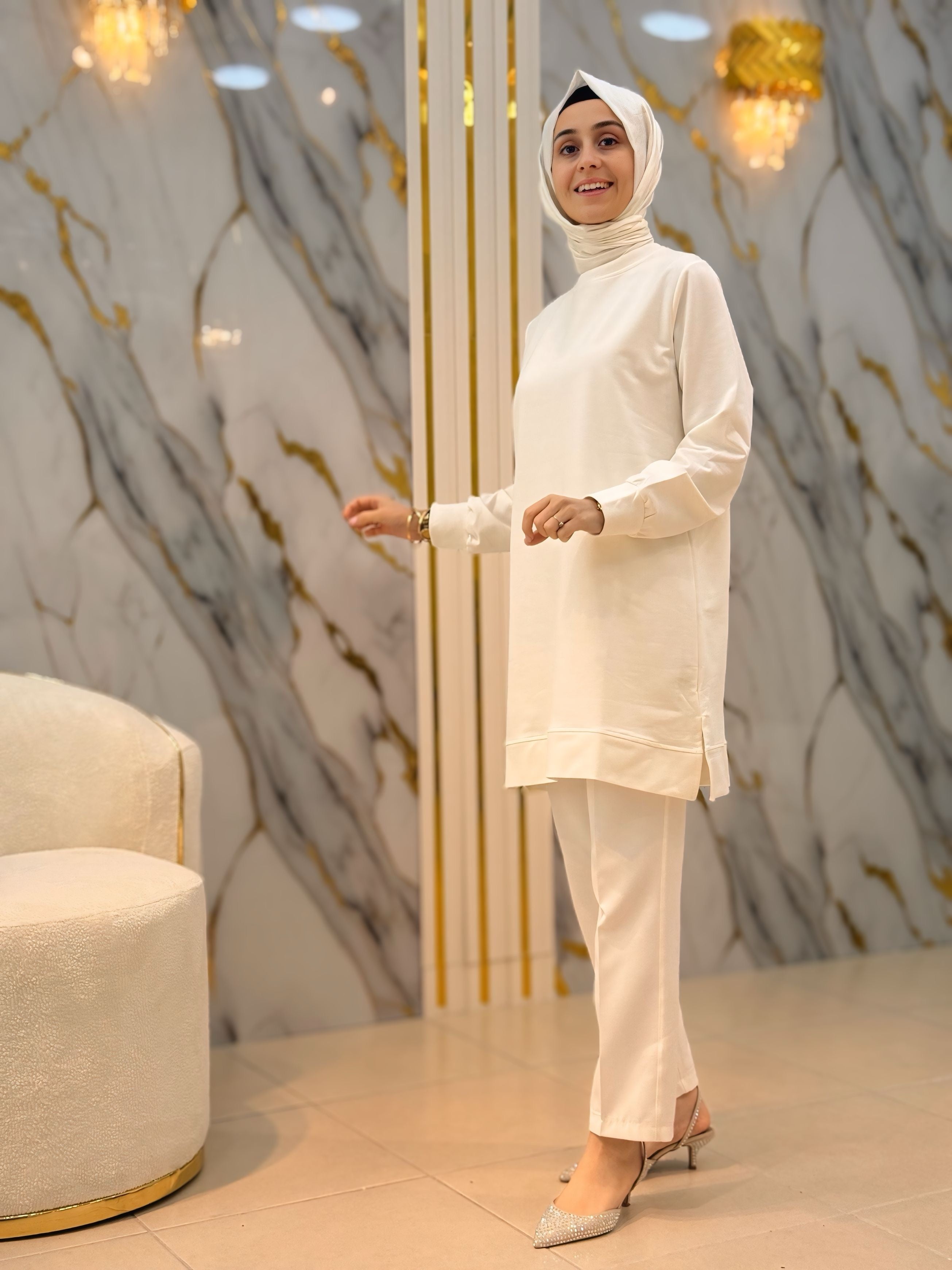 NY MEHLİKA YAKA TAŞLI KOL DANTEL VE İNCİ DETAY SOĞUK İP TUNİK 280
