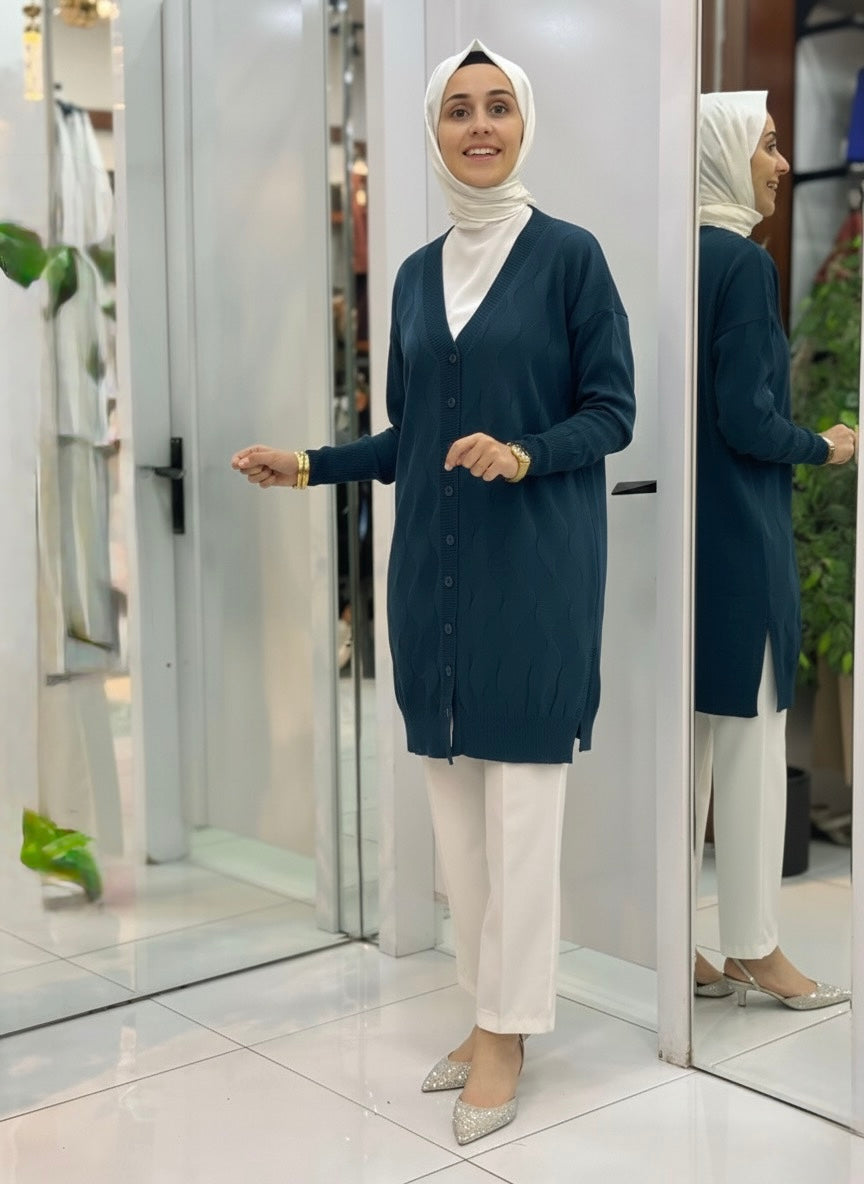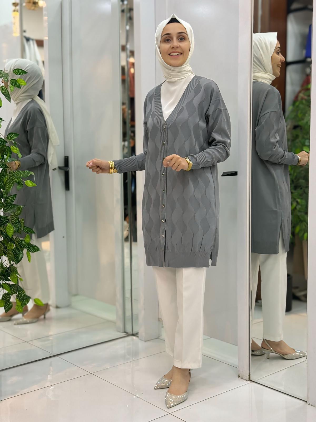 NY MEHLİKA ÖNÜ ÇİZGİ DETAY YIRTMAÇLI UZUN SOĞUK İP TUNİK 35244