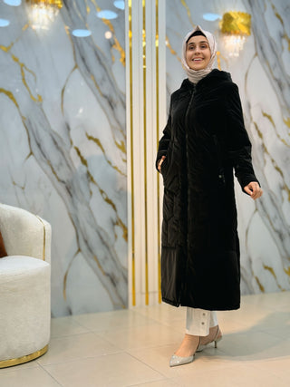 PANOVA KEMERLİ TAŞ İŞLEMELİ ANGORA UZUN KABAN 7107