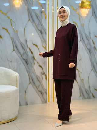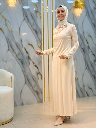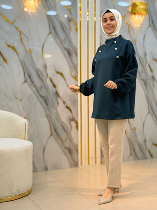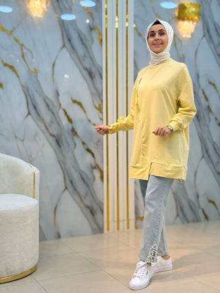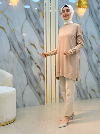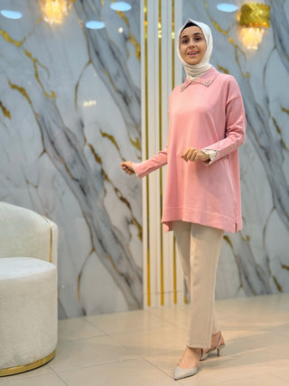 NY MEHLİKA YAKA TAŞLI KOL DANTEL VE İNCİ DETAY SOĞUK İP TUNİK 280