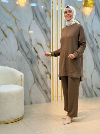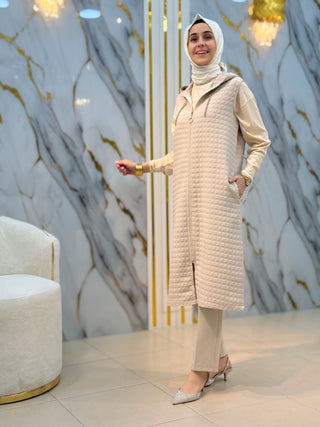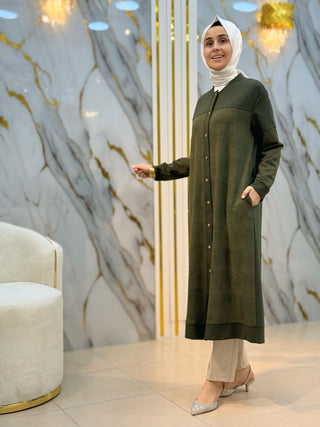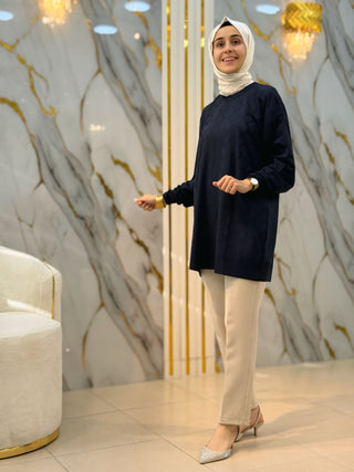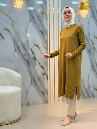NY MEHLİKA ÖNÜ ÇİZGİ DETAY YIRTMAÇLI UZUN SOĞUK İP TUNİK 35244