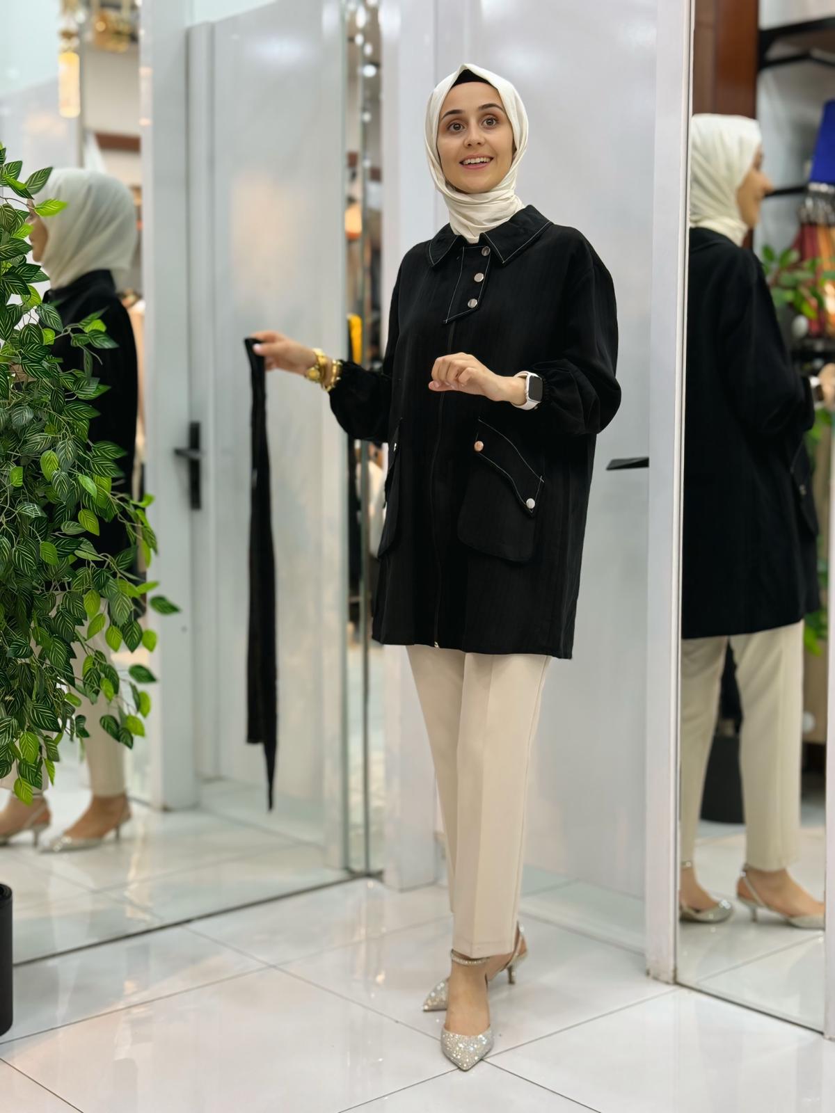 NY MEHLİKA KOL VE YAKA BRONŞ DÜĞME DETAY ANGORA KABAN 7958
