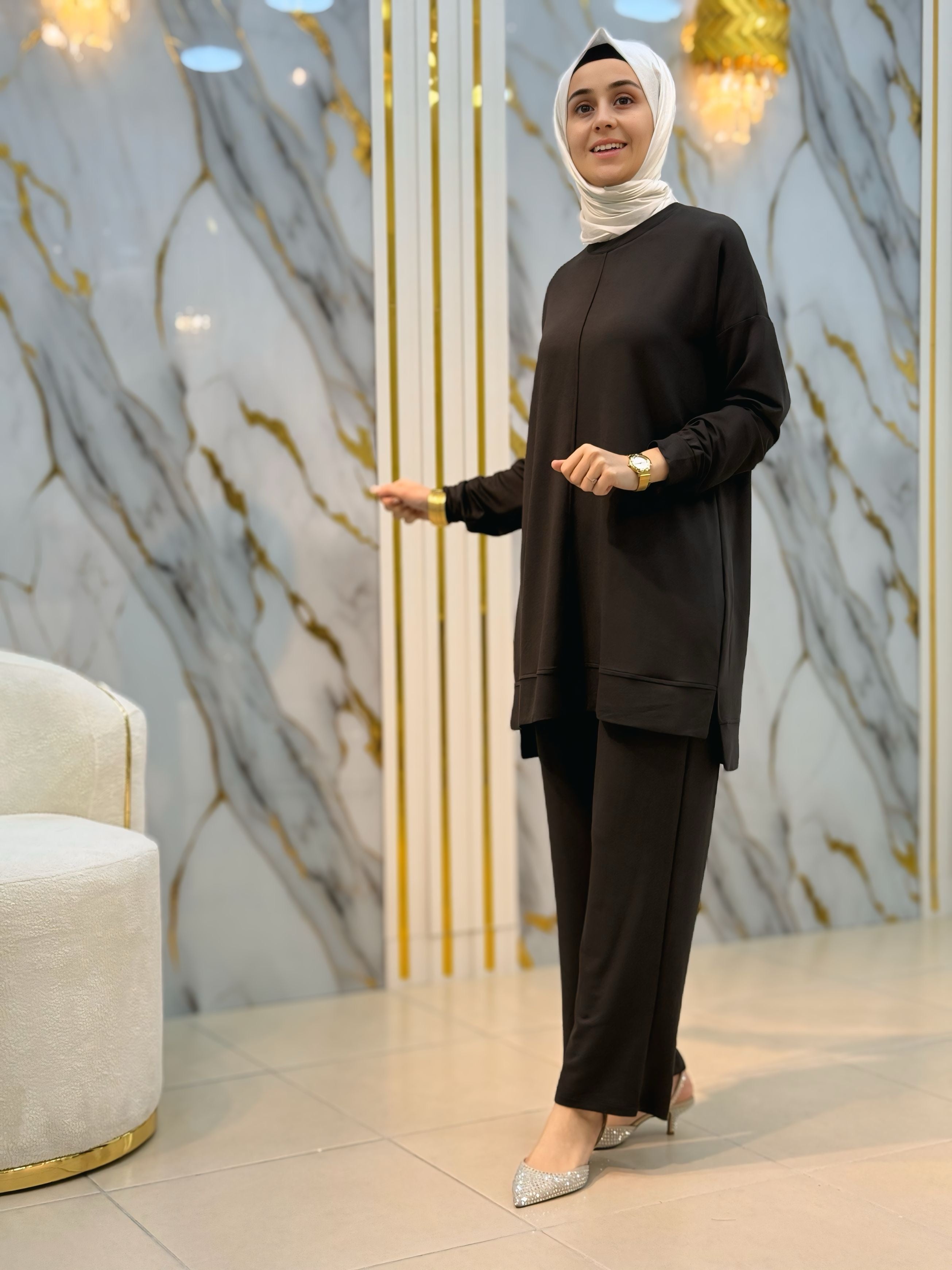 NY MEHLİKA ÖNÜ ÇİZGİ DETAY YIRTMAÇLI UZUN SOĞUK İP TUNİK 35244