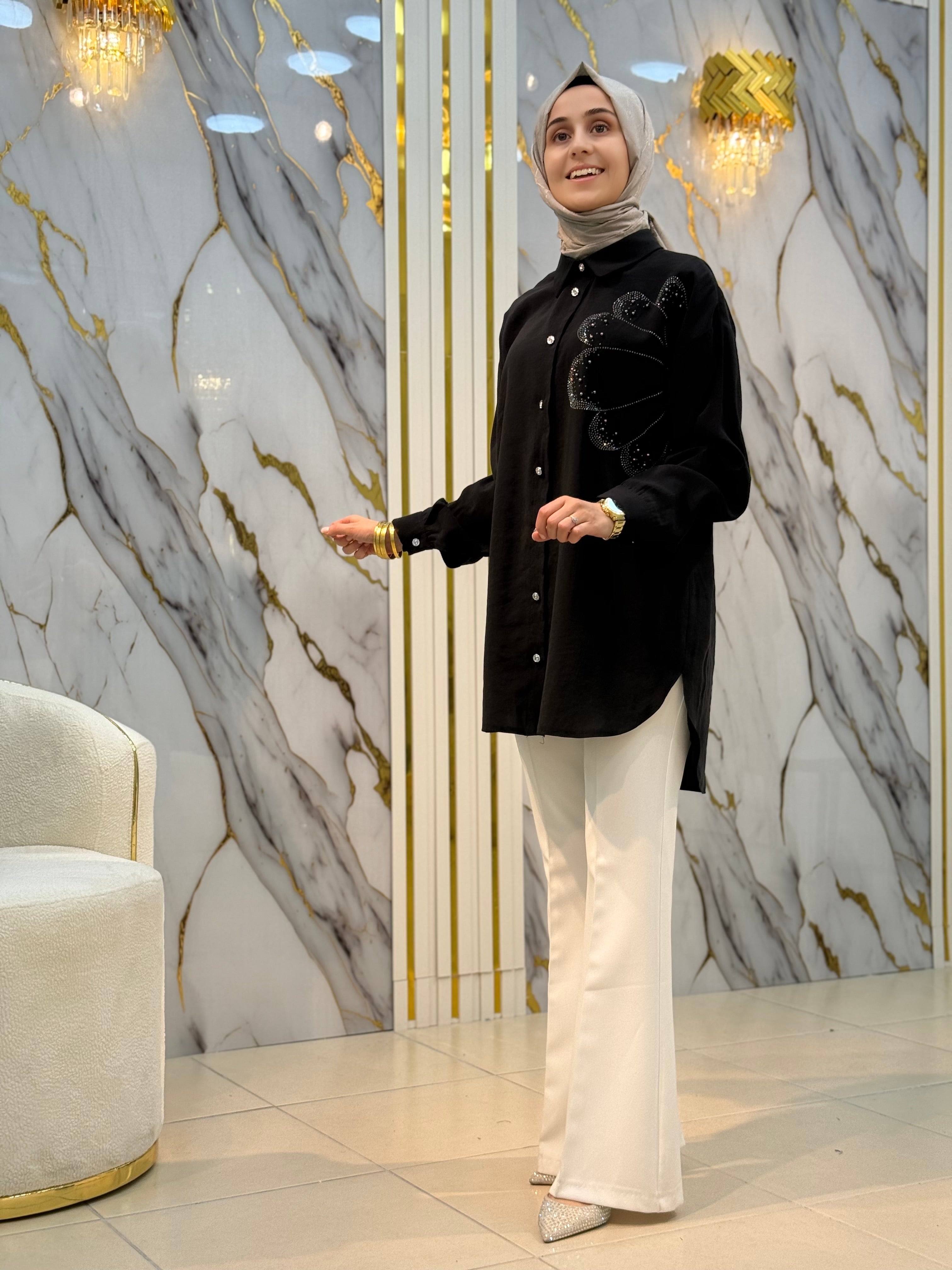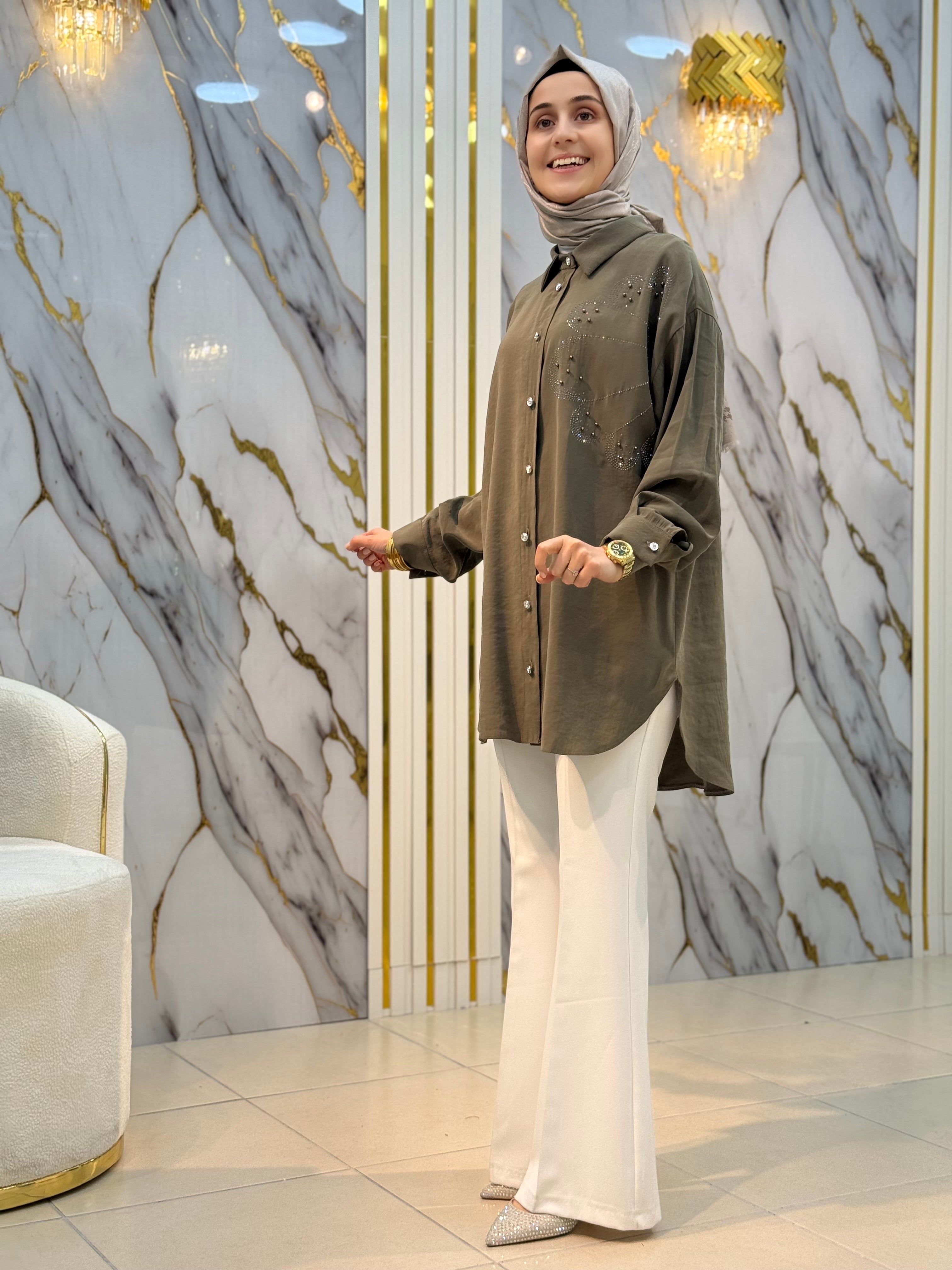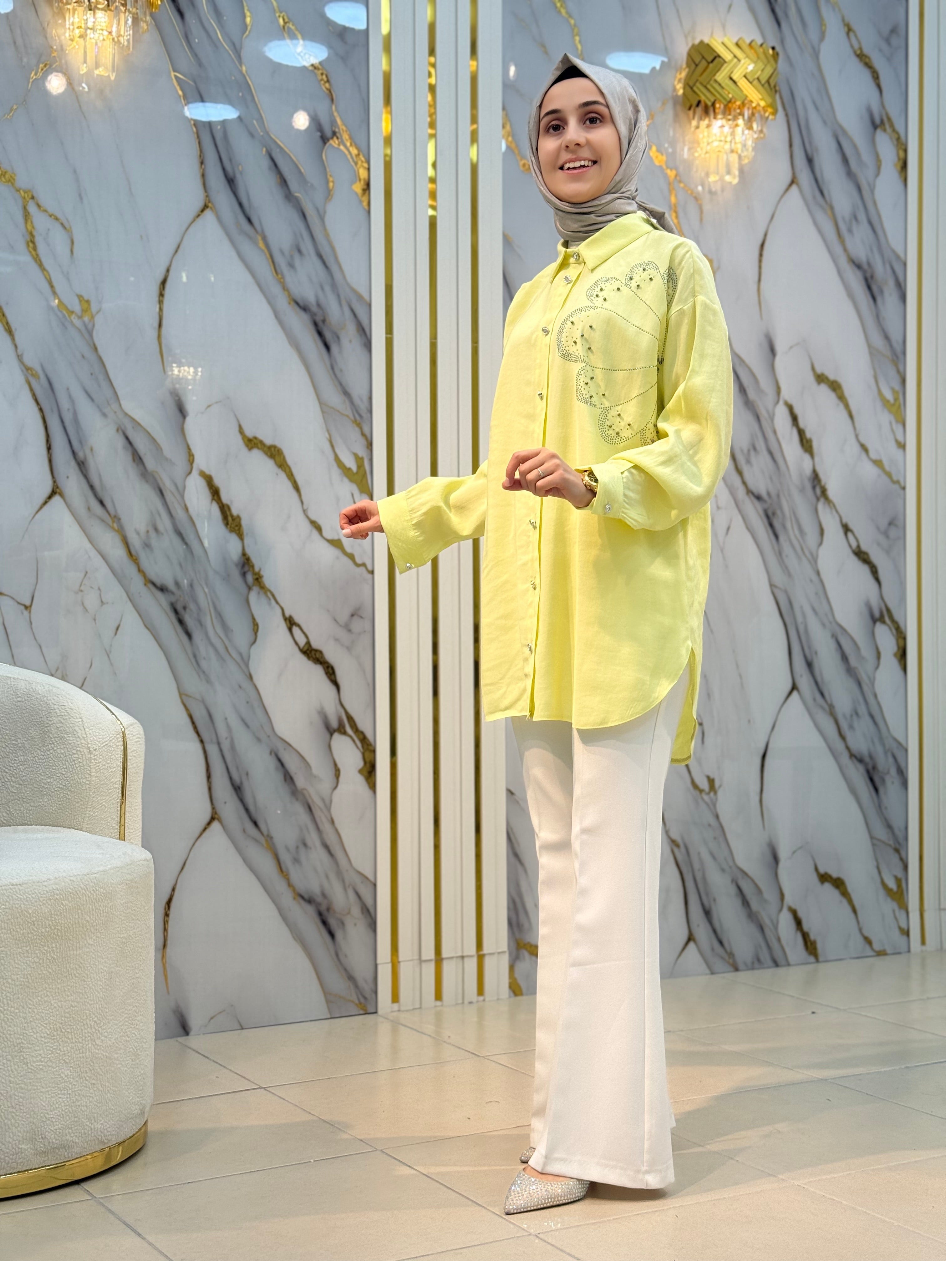 NY MEHLİKA ÇİÇEK TAŞ İŞLEME TENSEL KUPRA GÖMLEK 2849
