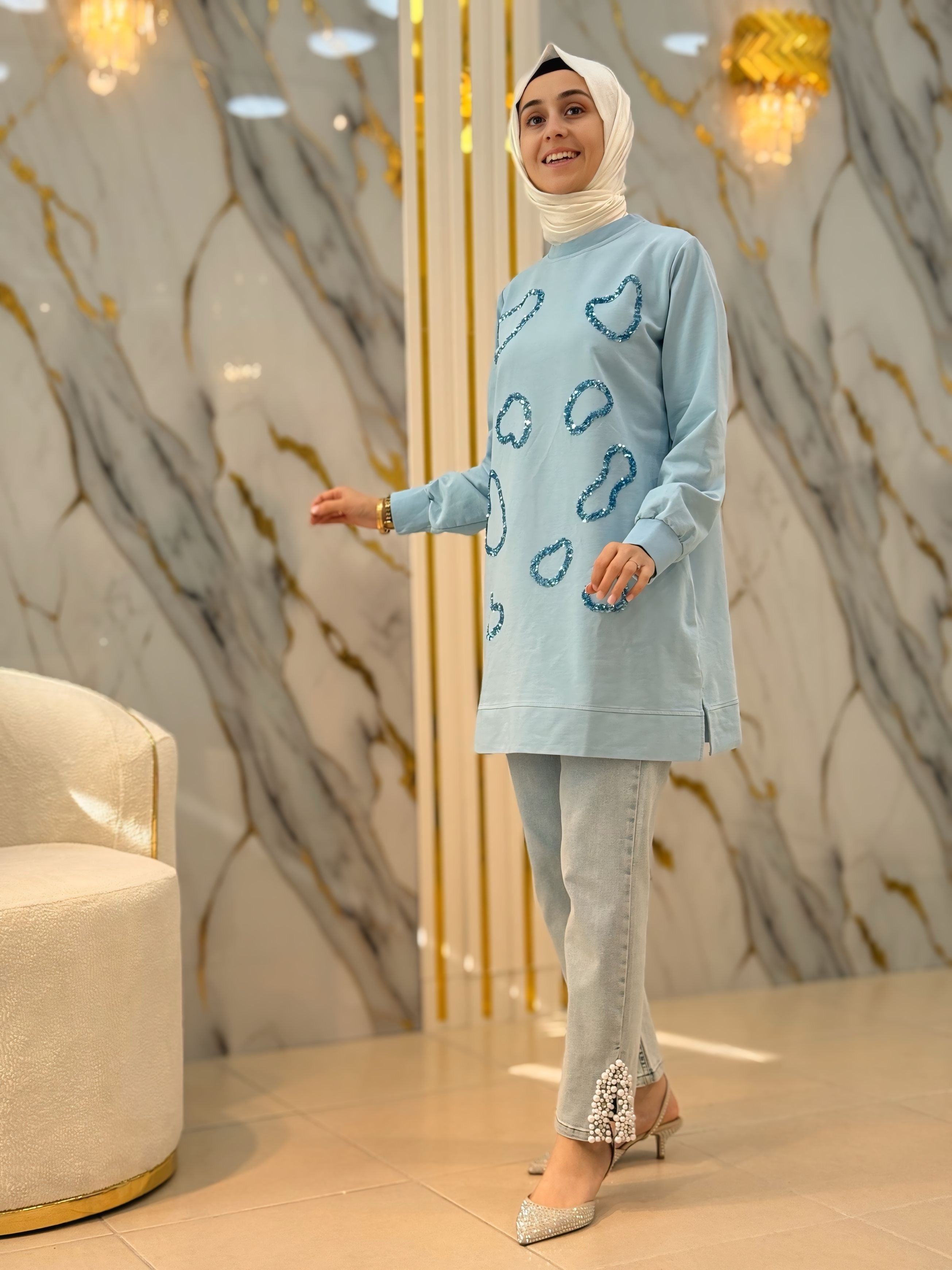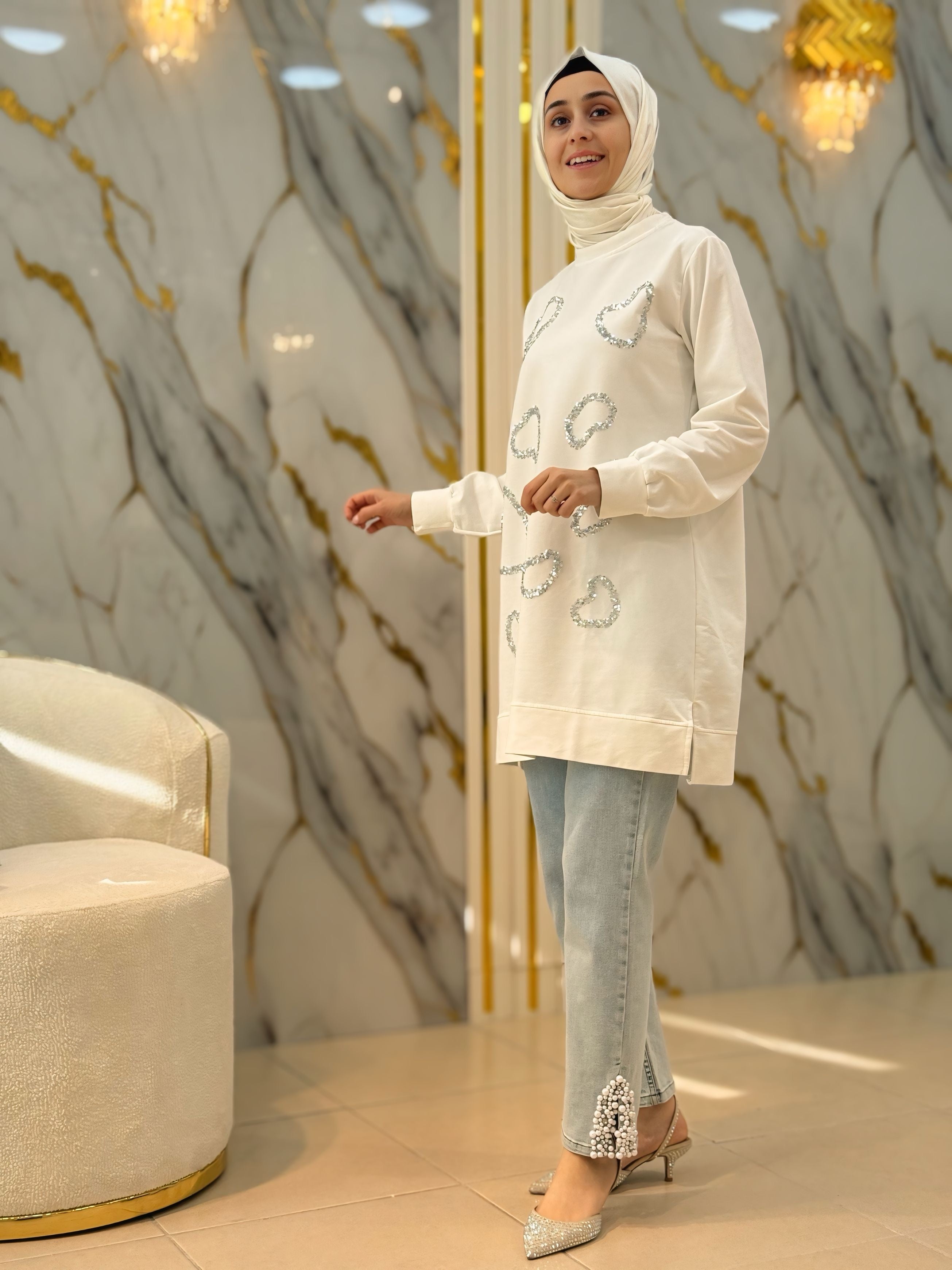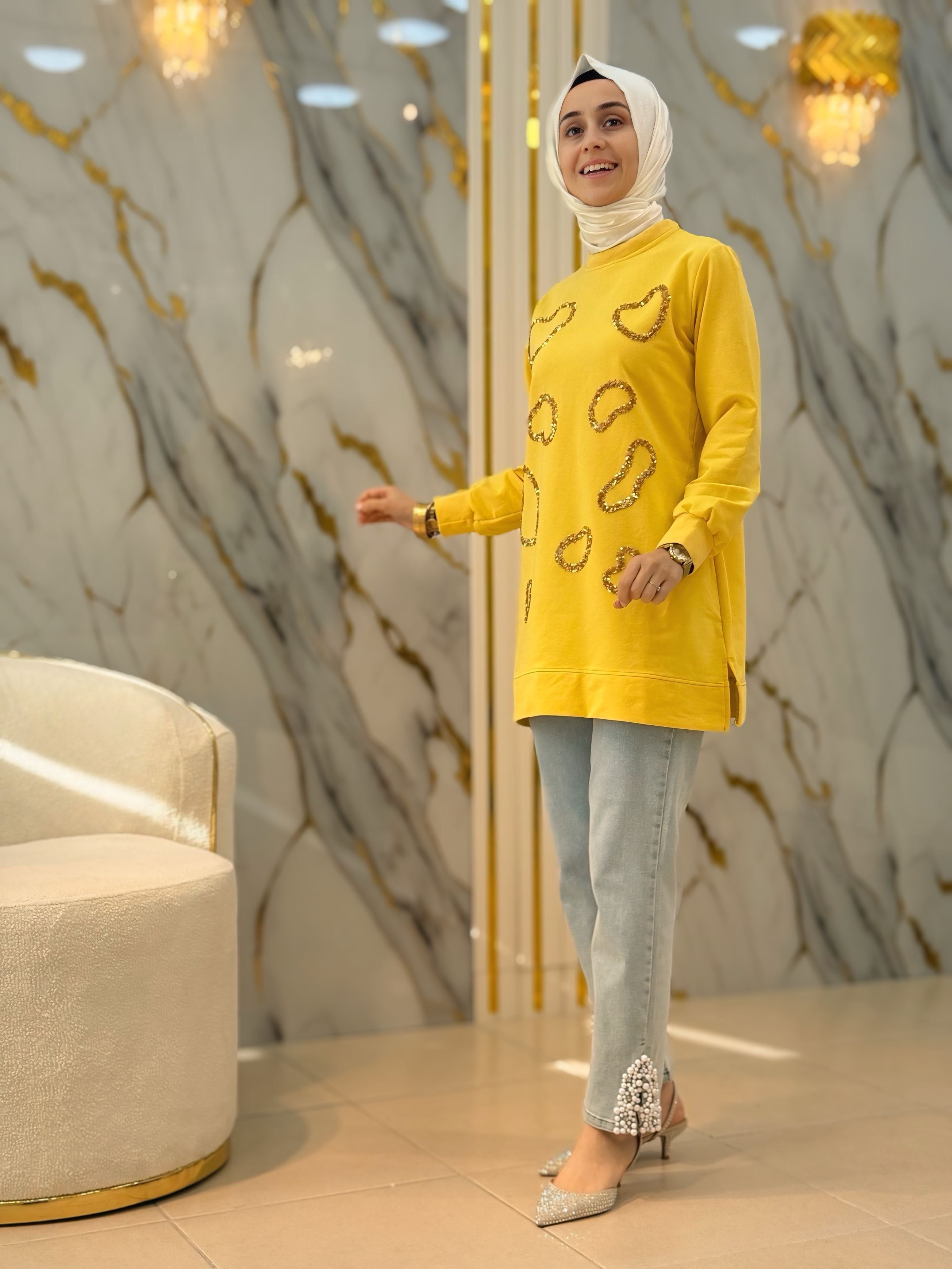 AYŞE AKAY PUL PAYET İŞLEMELİ 85 CM TUNİK 25224