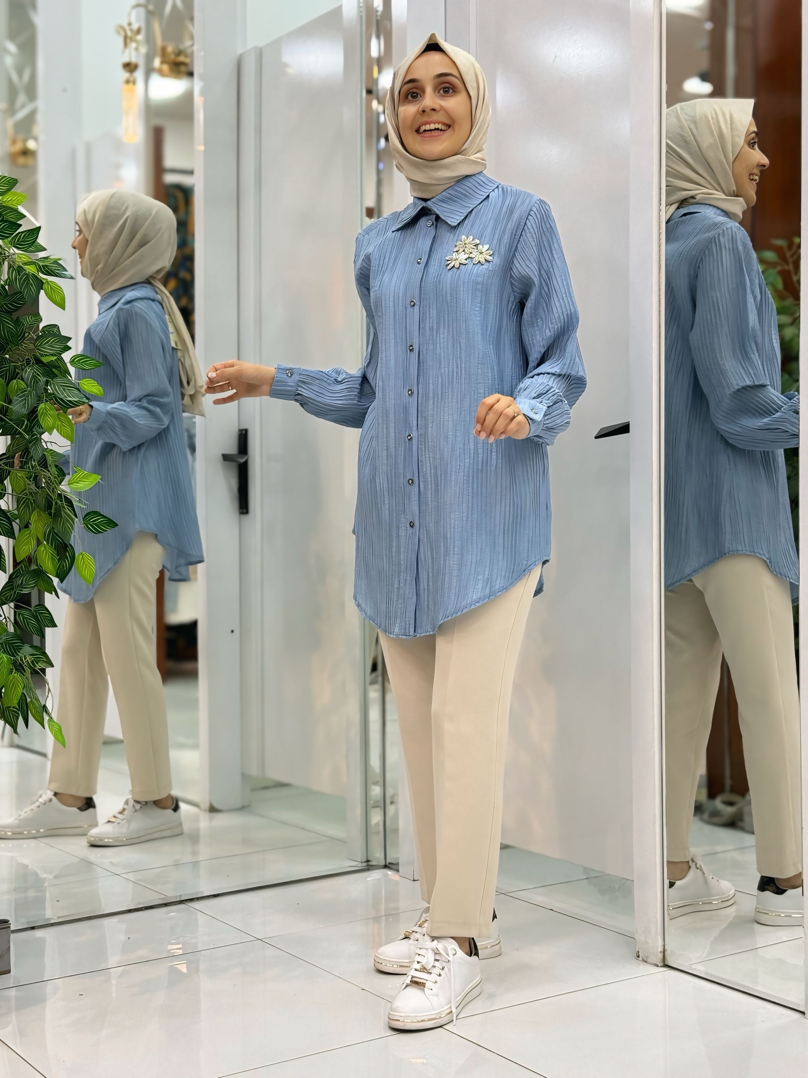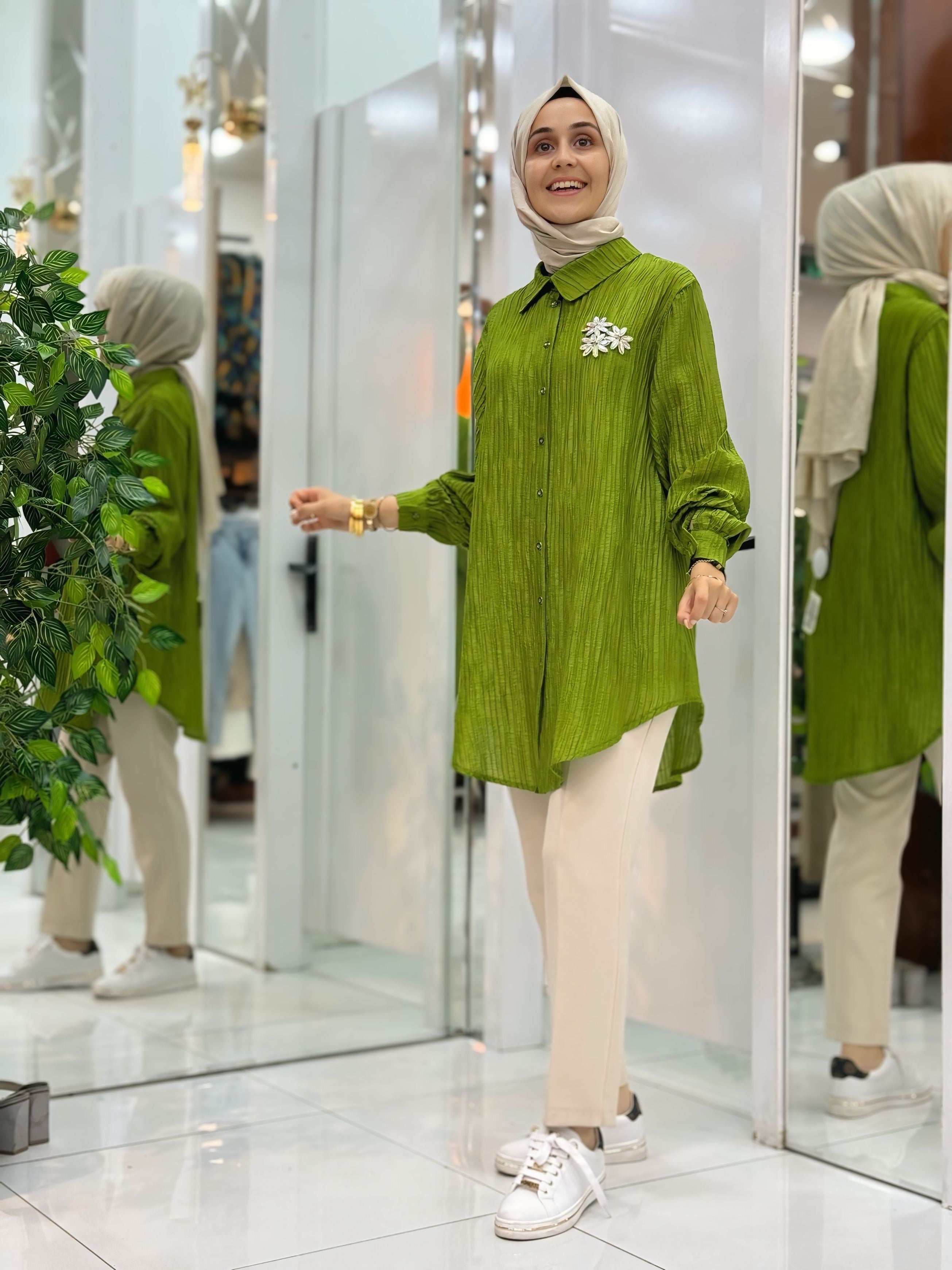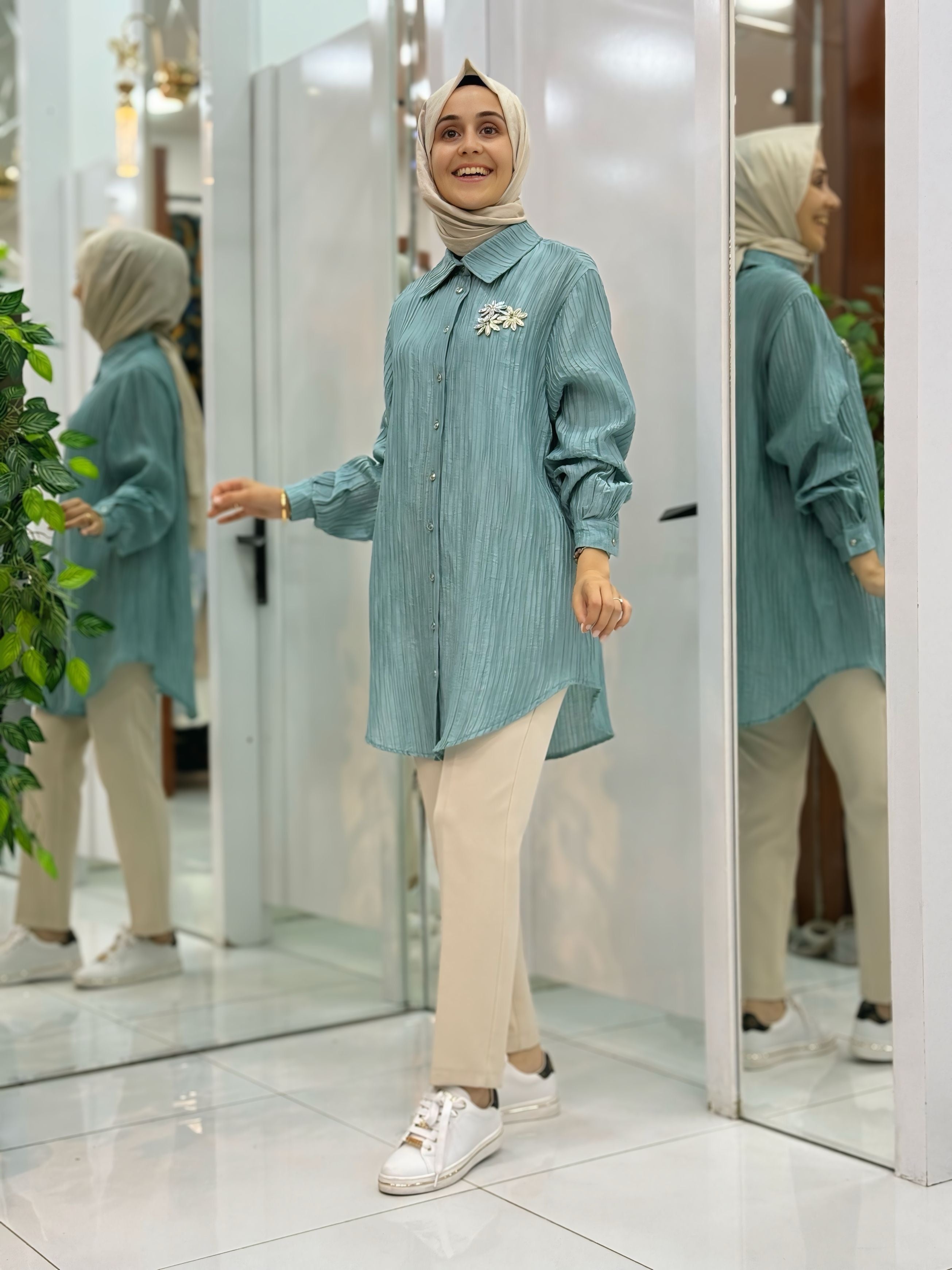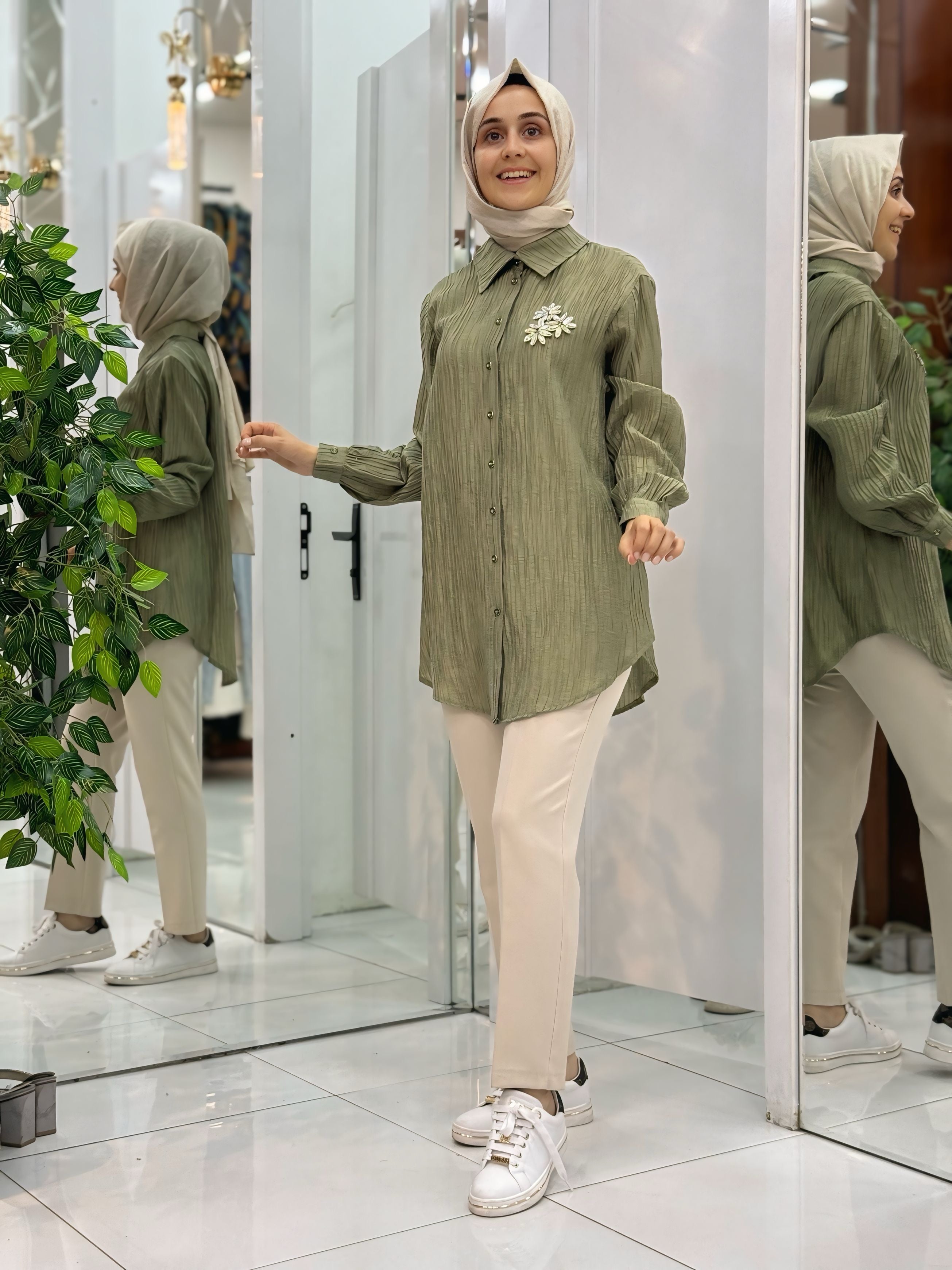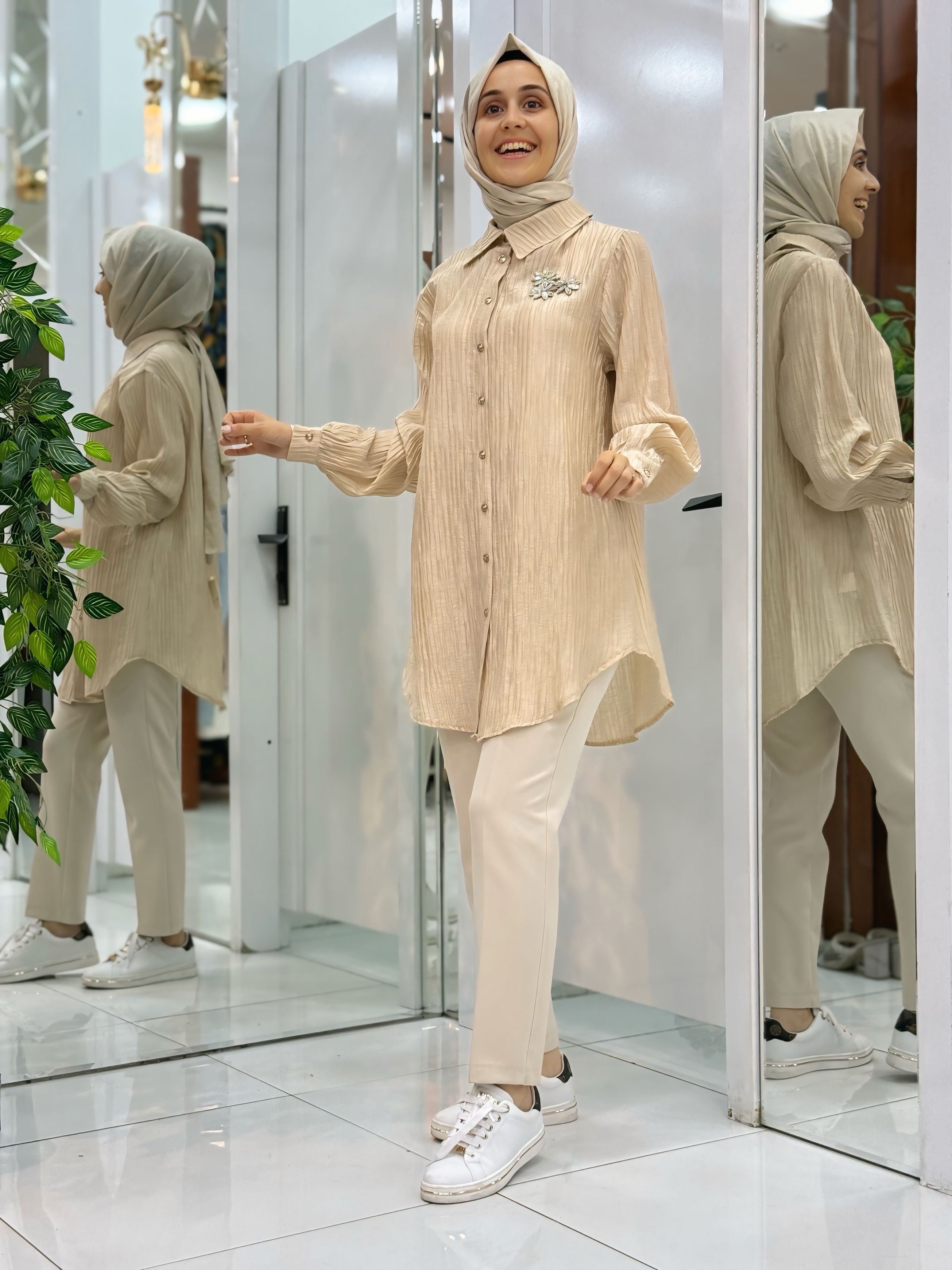 NY MEHLİKA KOL VE YAKA BRONŞ DÜĞME DETAY ANGORA KABAN 7958