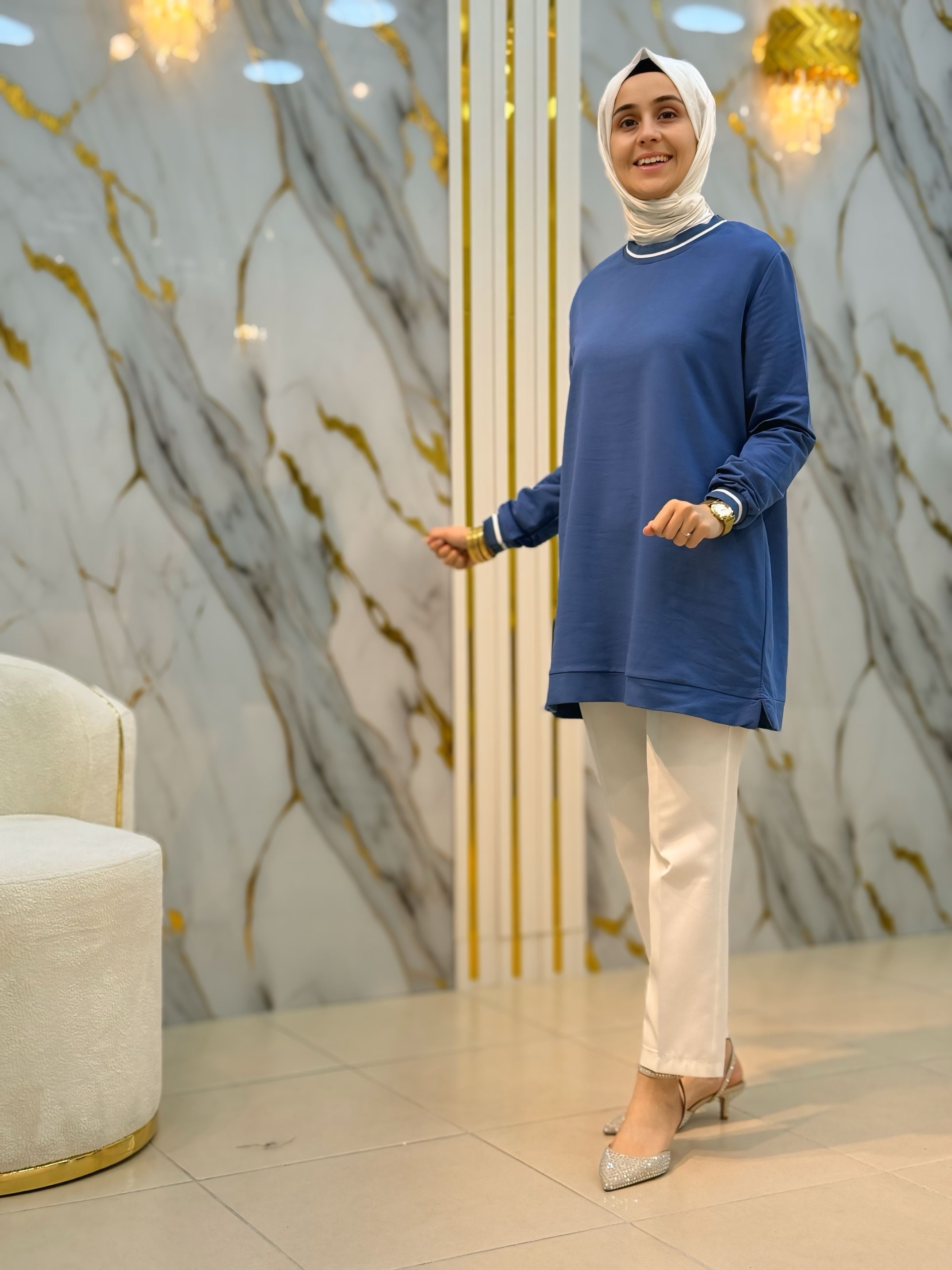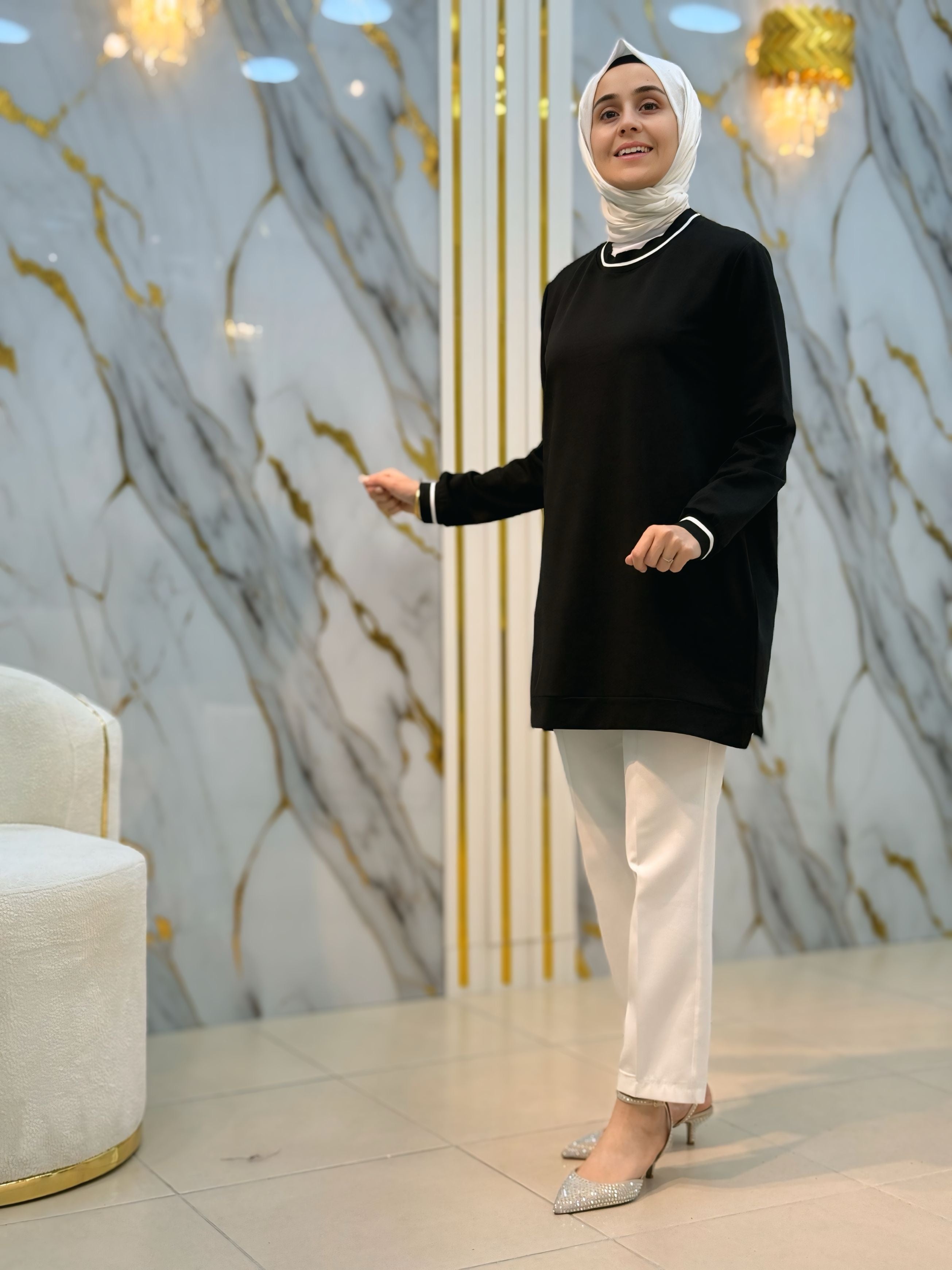 NY MEHLİKA YAKA TAŞLI KOL DANTEL VE İNCİ DETAY SOĞUK İP TUNİK 280