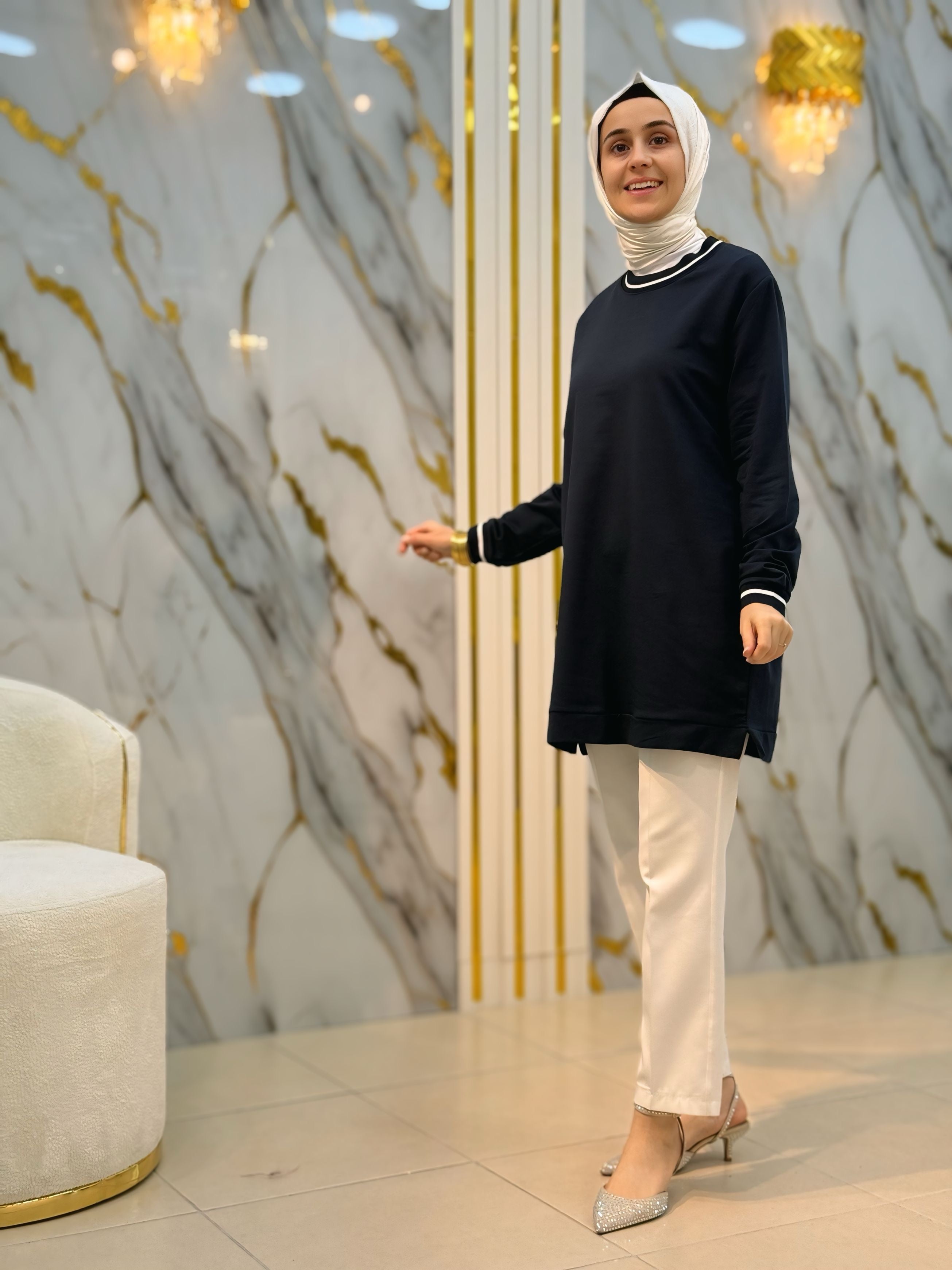 NY MEHLİKA ÖNÜ ÇİZGİ DETAY YIRTMAÇLI UZUN SOĞUK İP TUNİK 35244