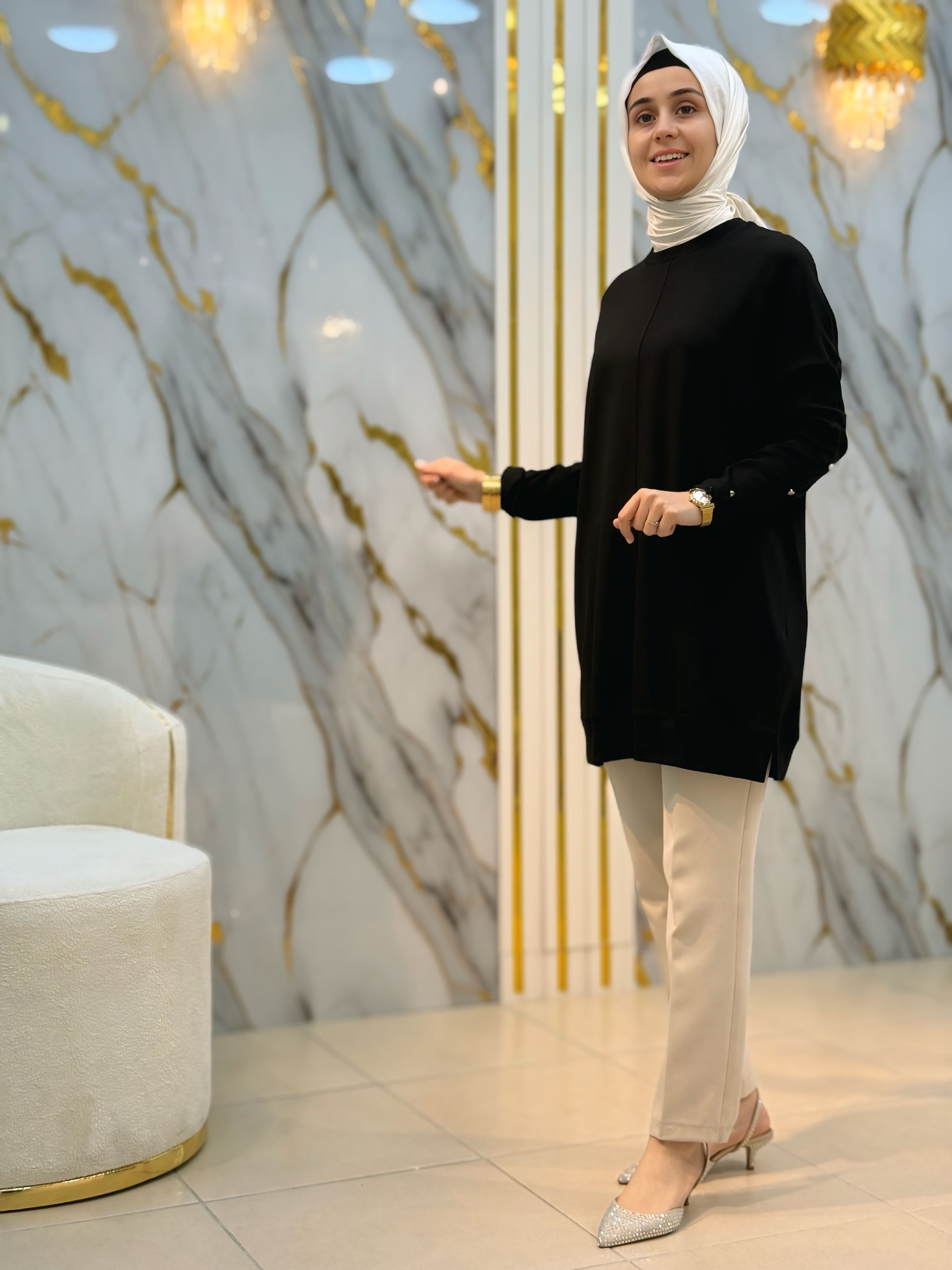 NY MEHLİKA YAKA TAŞLI KOL DANTEL VE İNCİ DETAY SOĞUK İP TUNİK 280