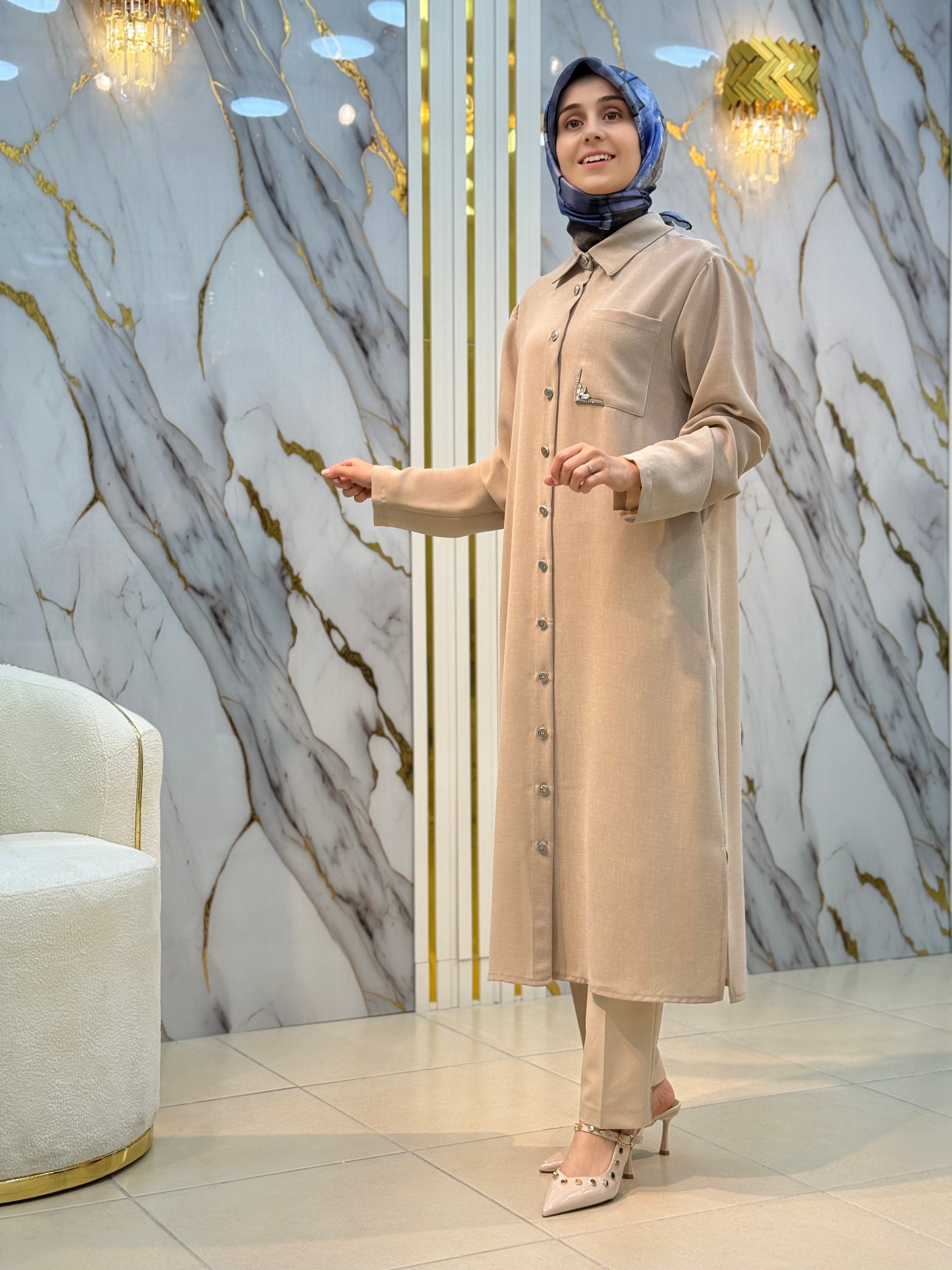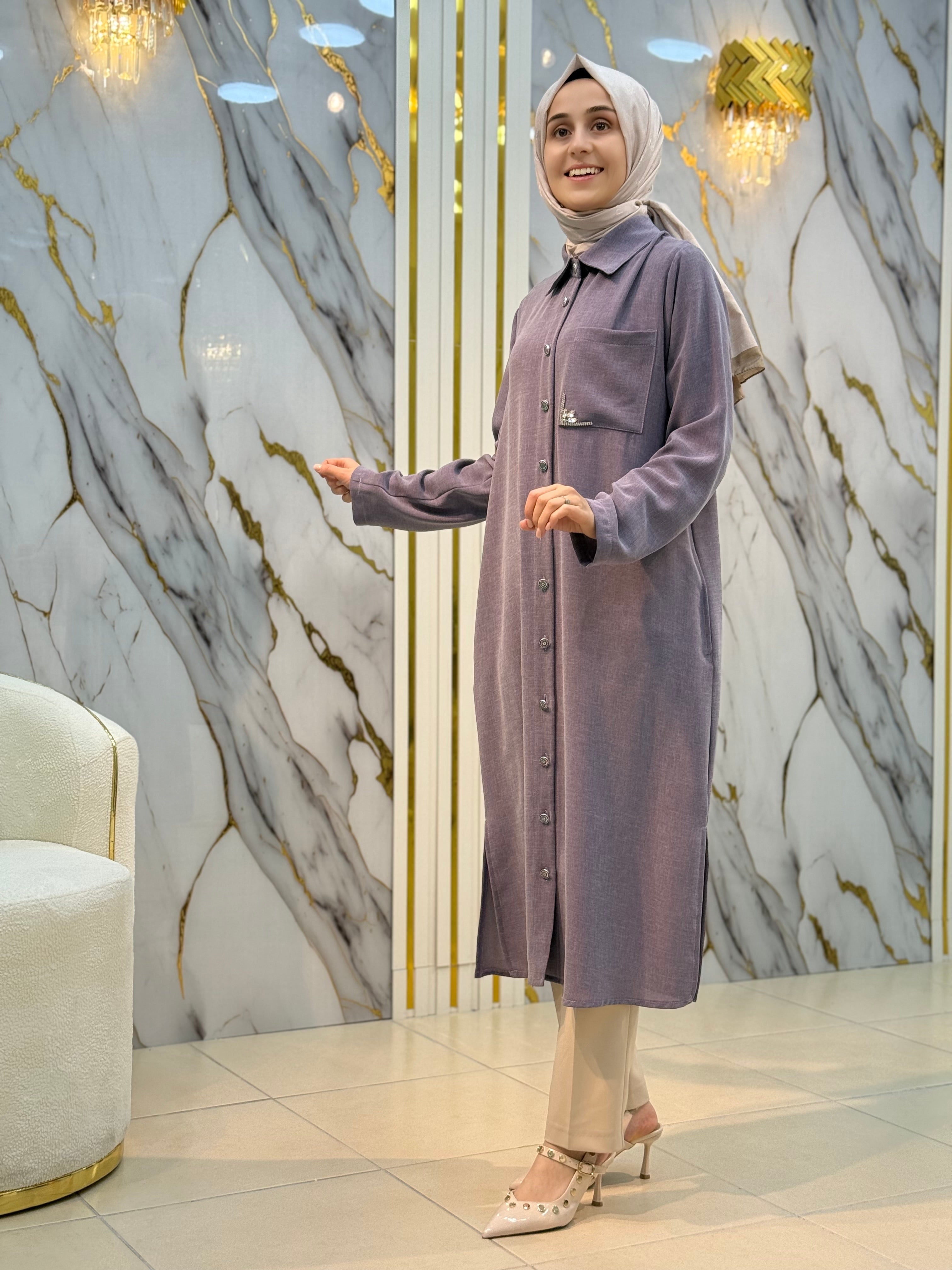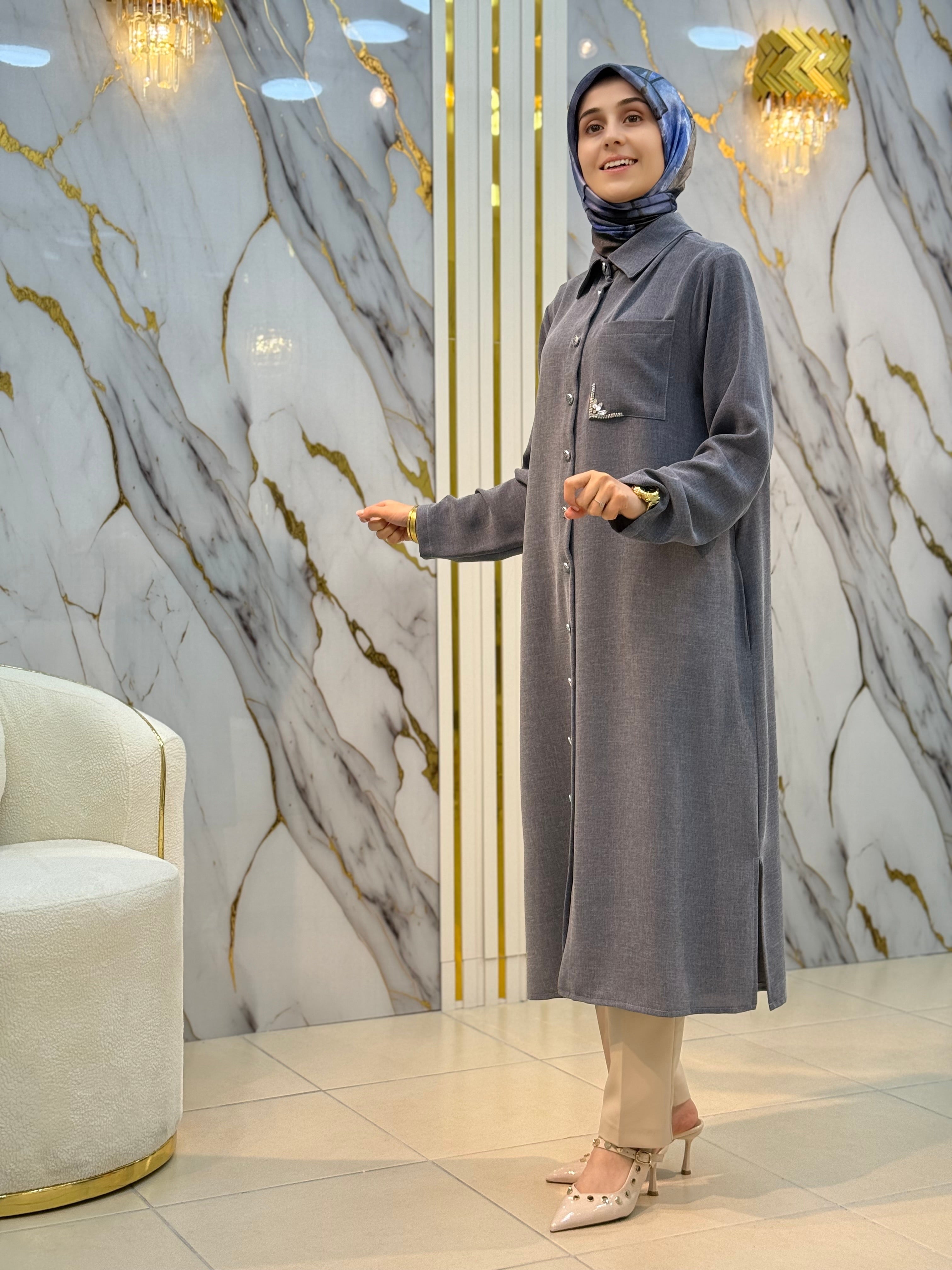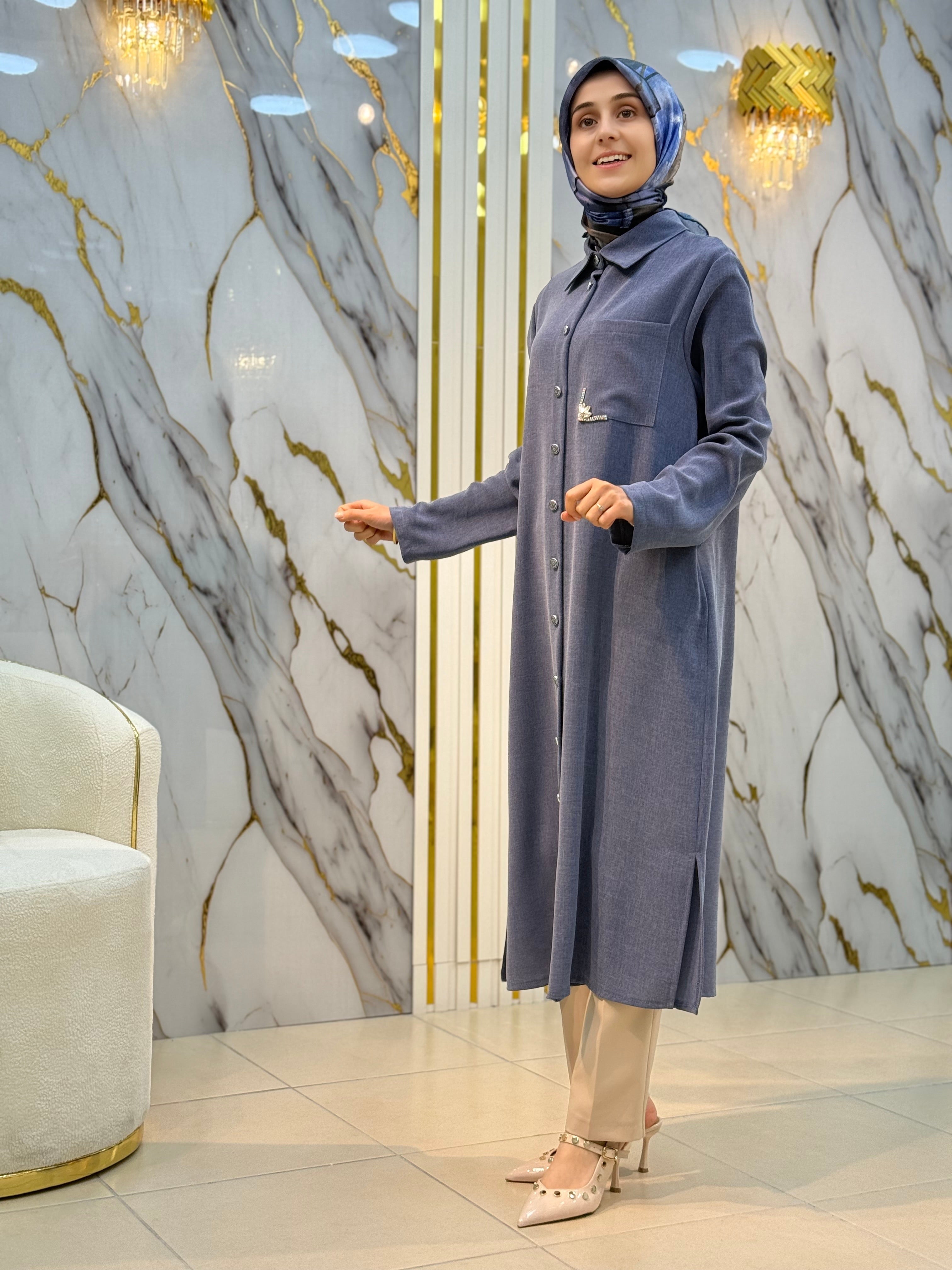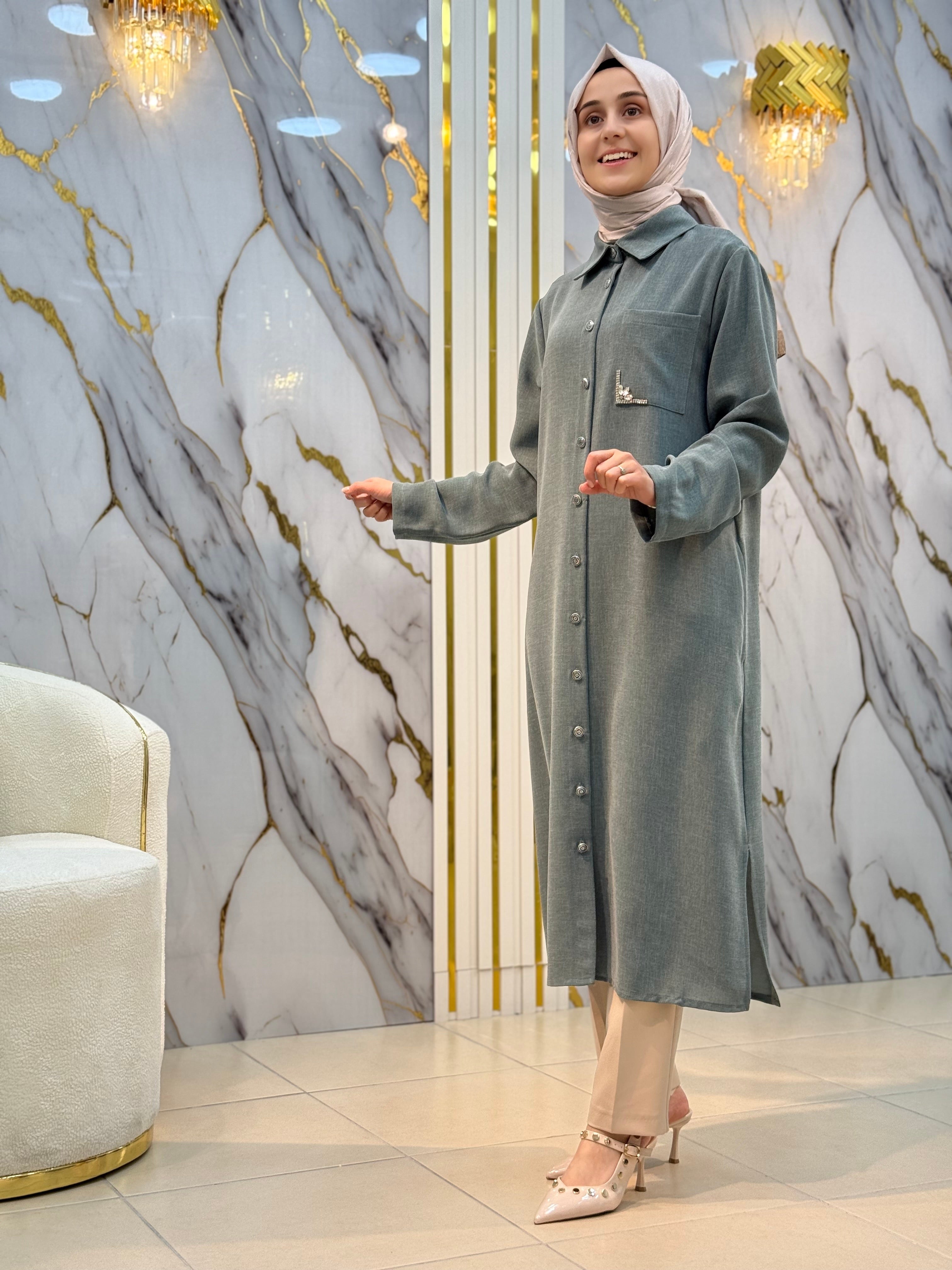 KADO YAKA TAŞ VE CEP DETAYLI UZUN TUNİK 251026 – NY MEHLİKA EXCLUSİVE