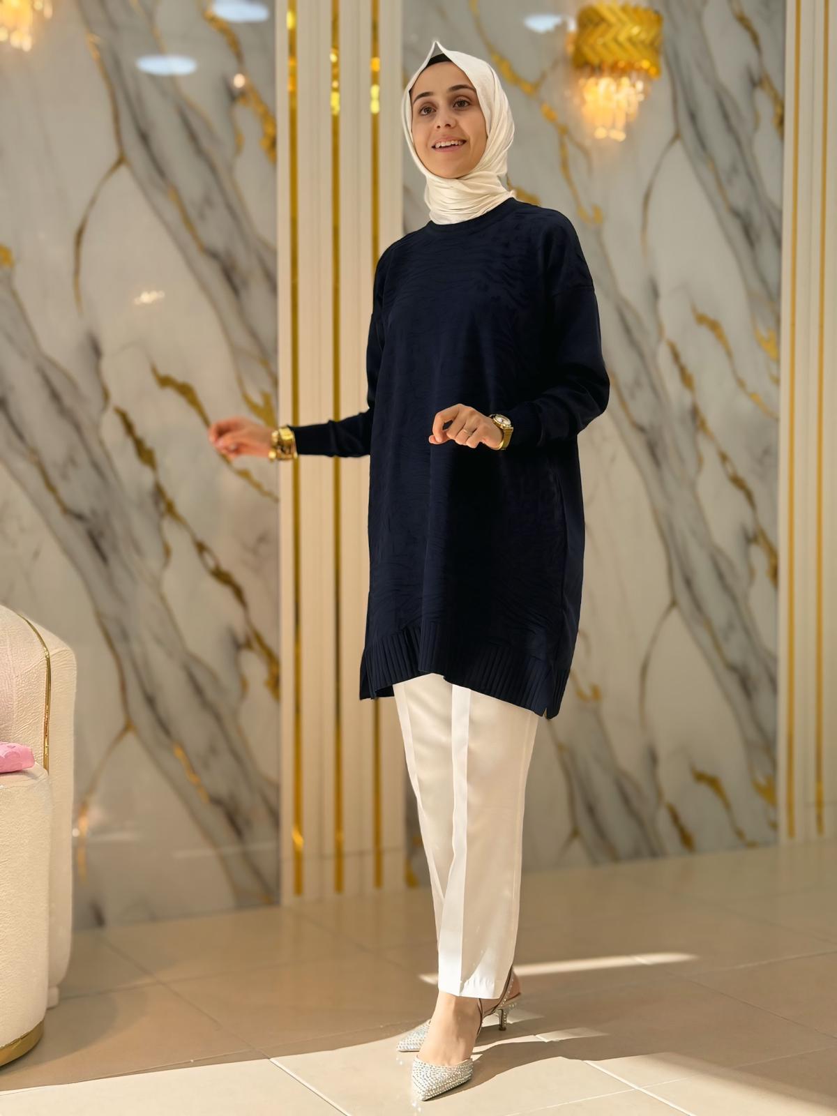 NY MEHLİKA KENDİNDEN DESENLİ SOĞUK İP TUNİK 3274