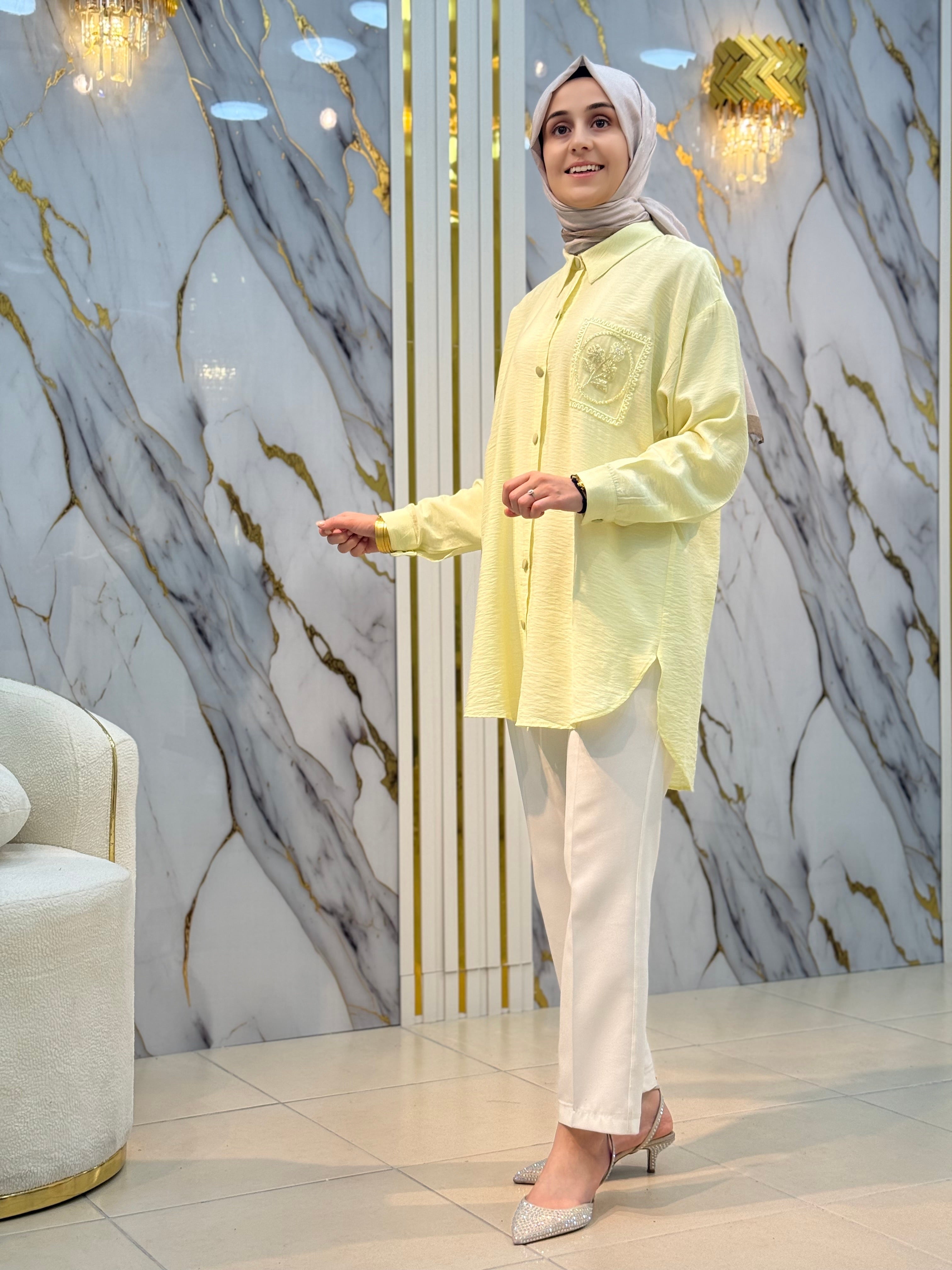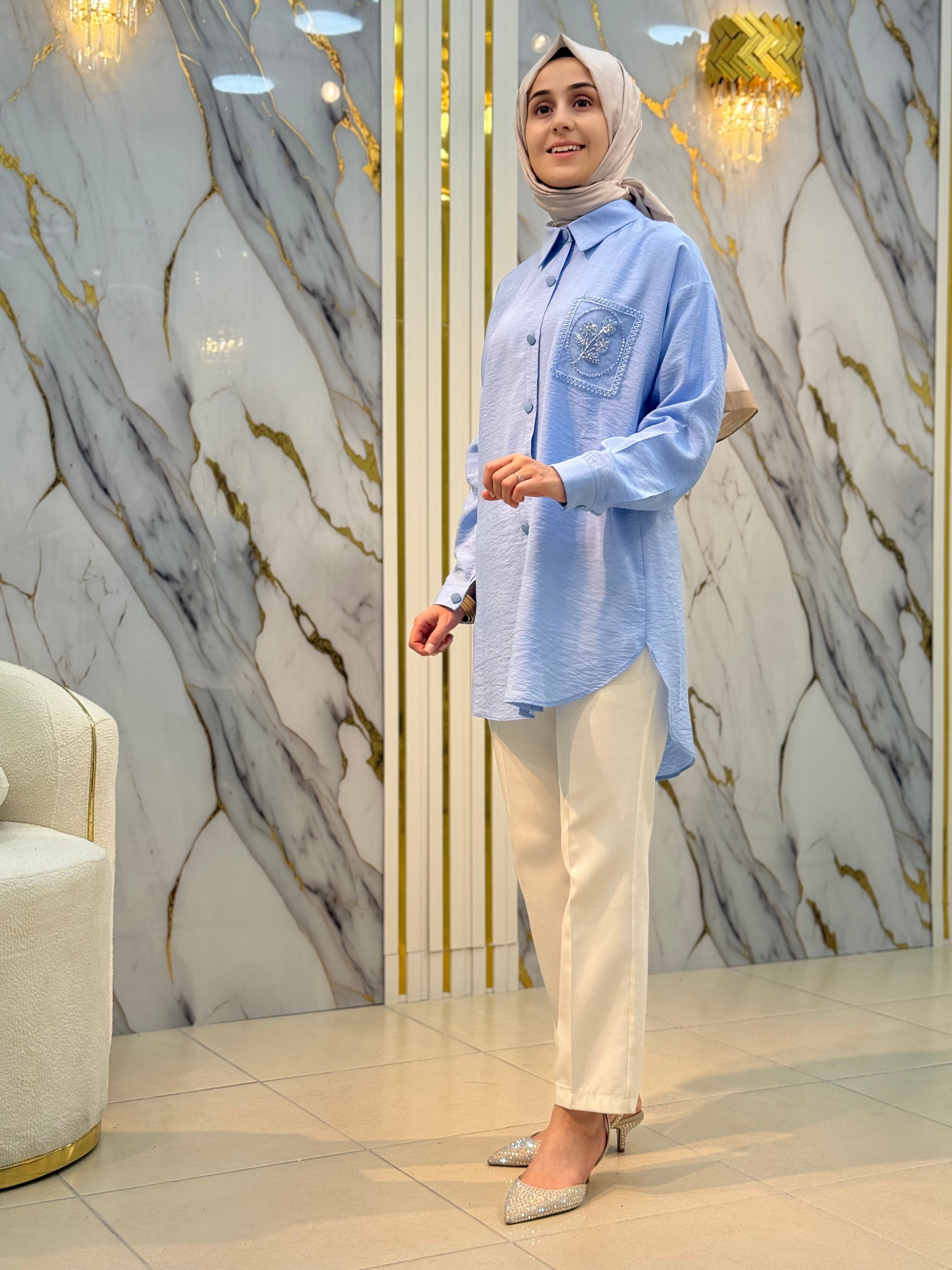 NY MEHLİKA CEP DANTEL İŞLEME DETAYLI GÖMLEK 2855