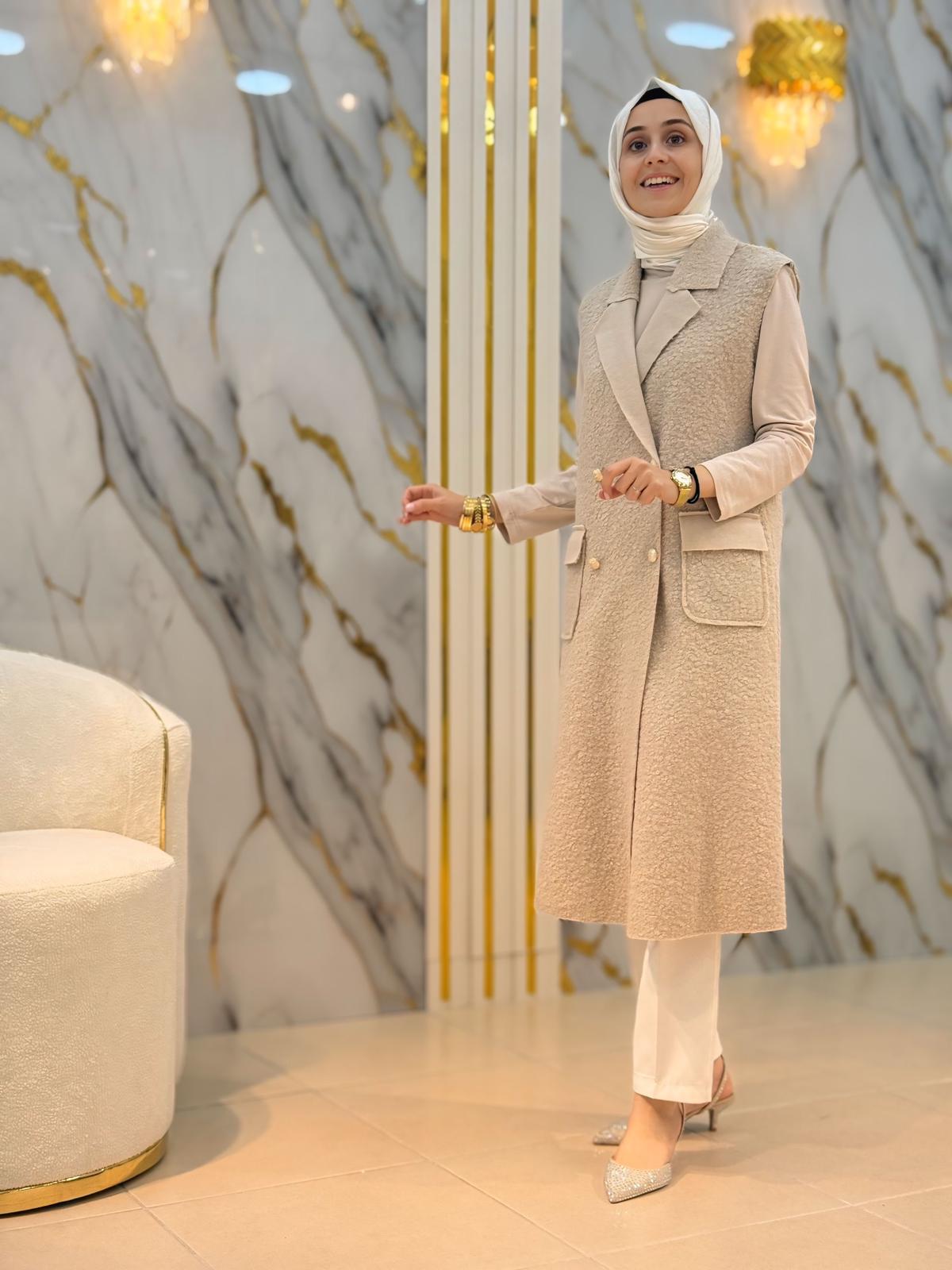 NY MEHLİKA KOL VE YAKA BRONŞ DÜĞME DETAY ANGORA KABAN 7958