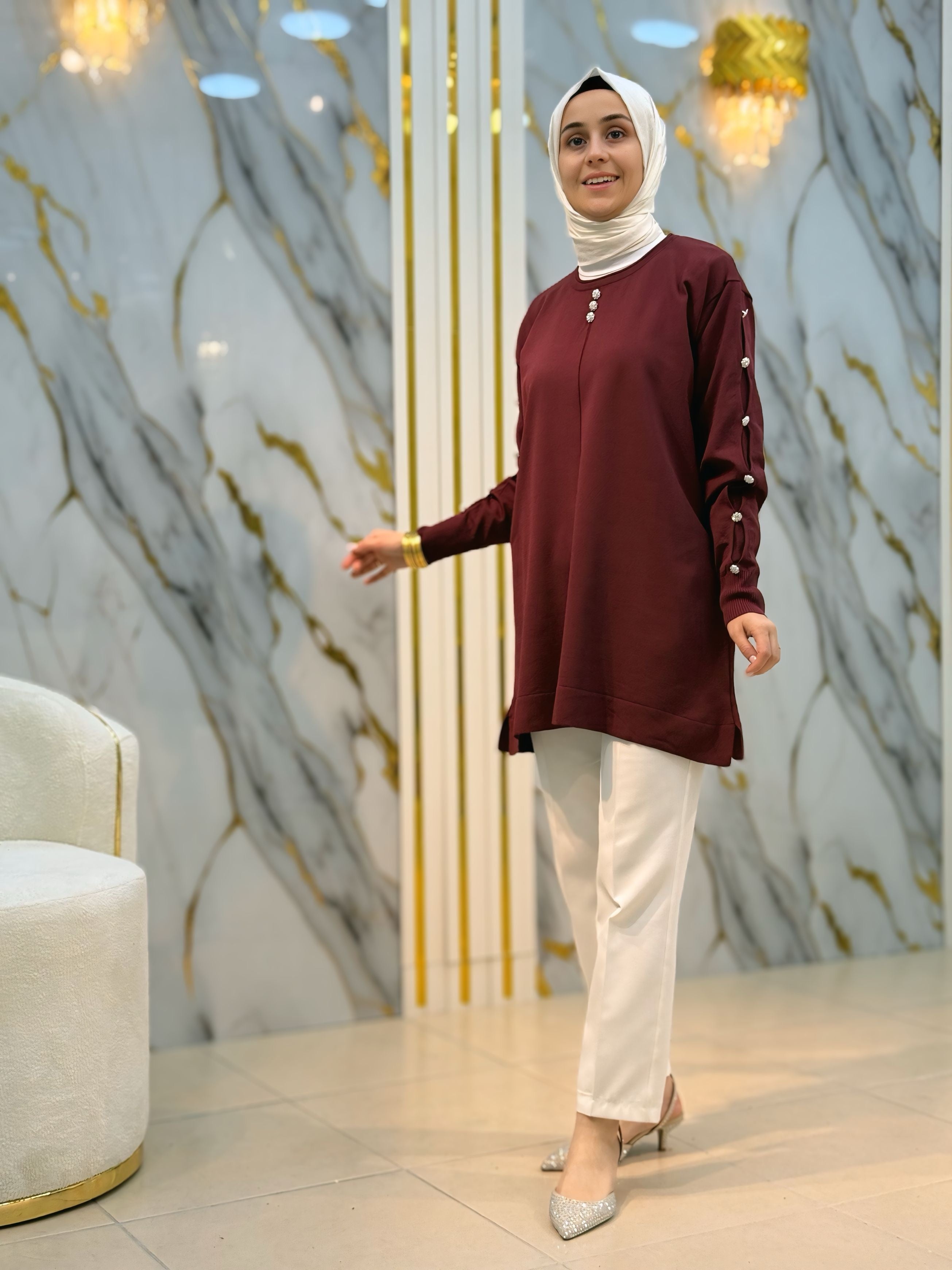 NY MEHLİKA YAKA TAŞLI KOL DANTEL VE İNCİ DETAY SOĞUK İP TUNİK 280