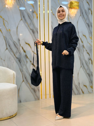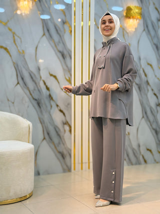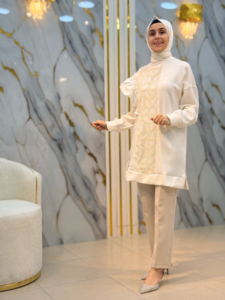 NY MEHLİKA YAKA TAŞLI KOL DANTEL VE İNCİ DETAY SOĞUK İP TUNİK 280