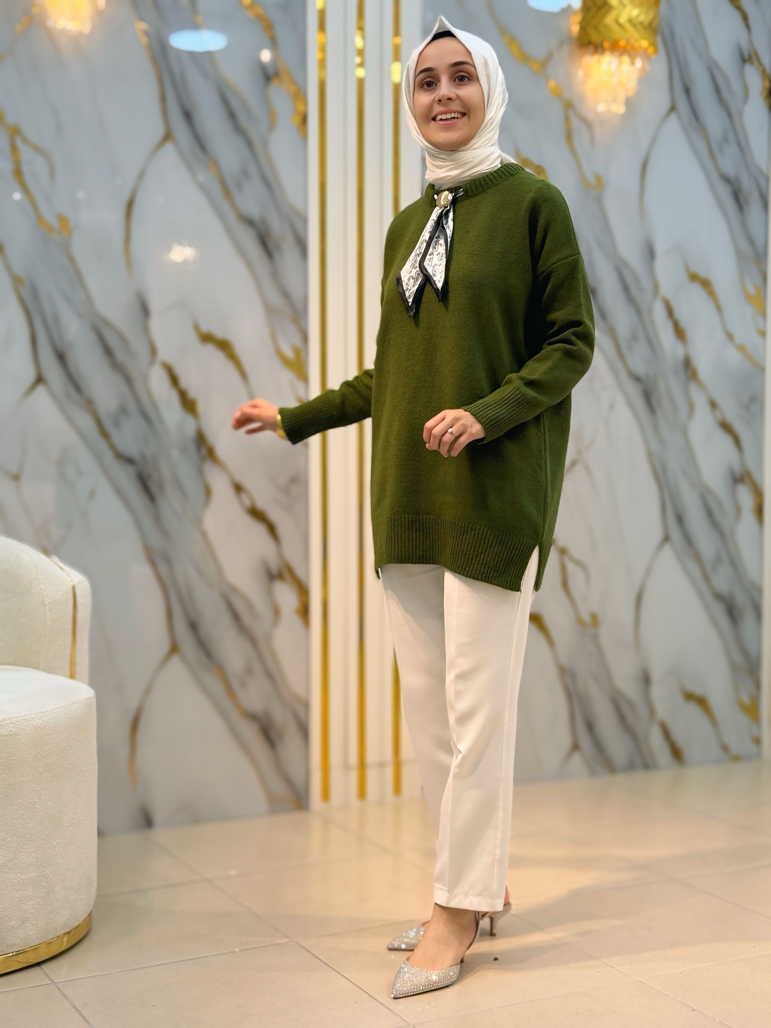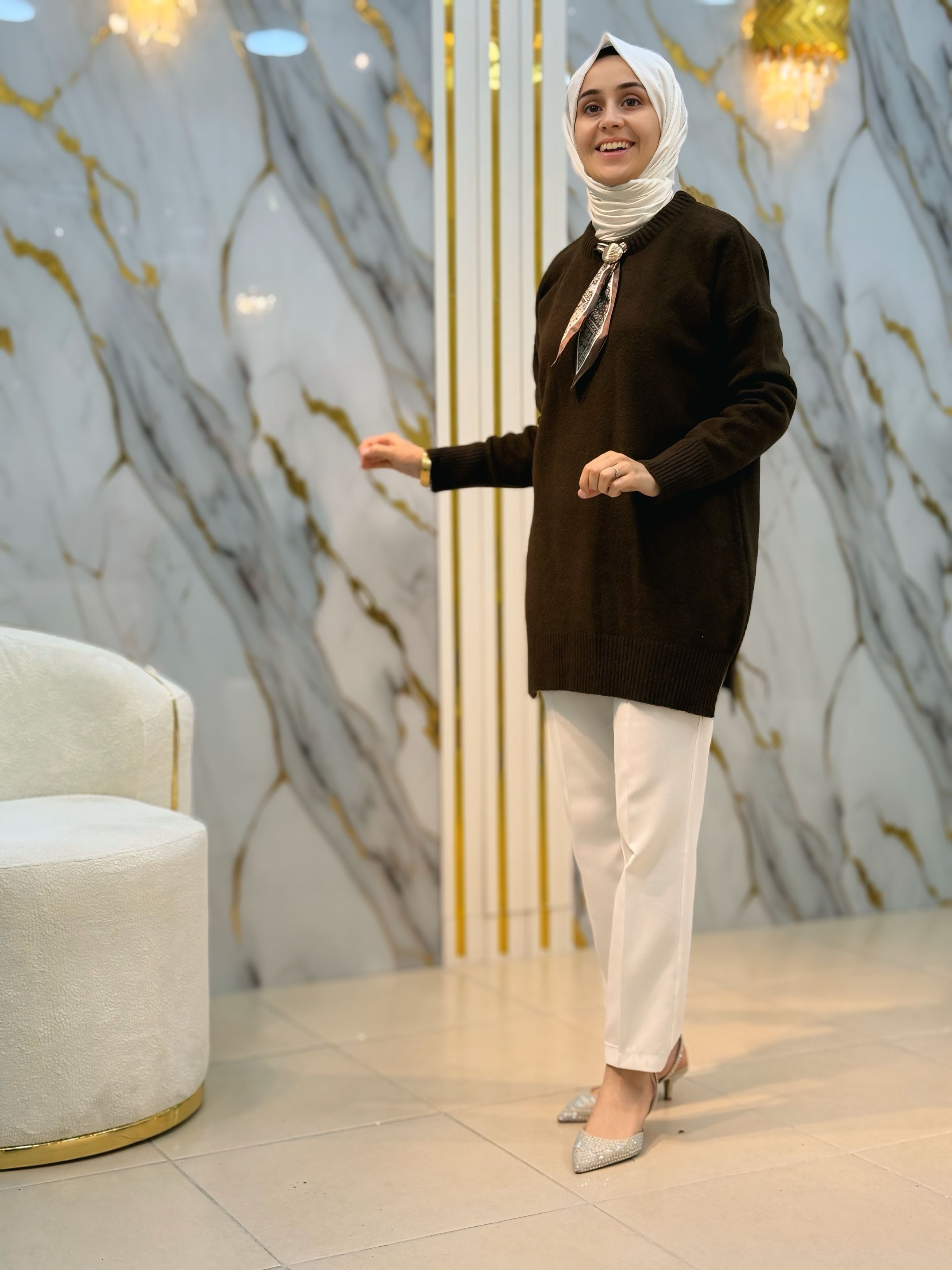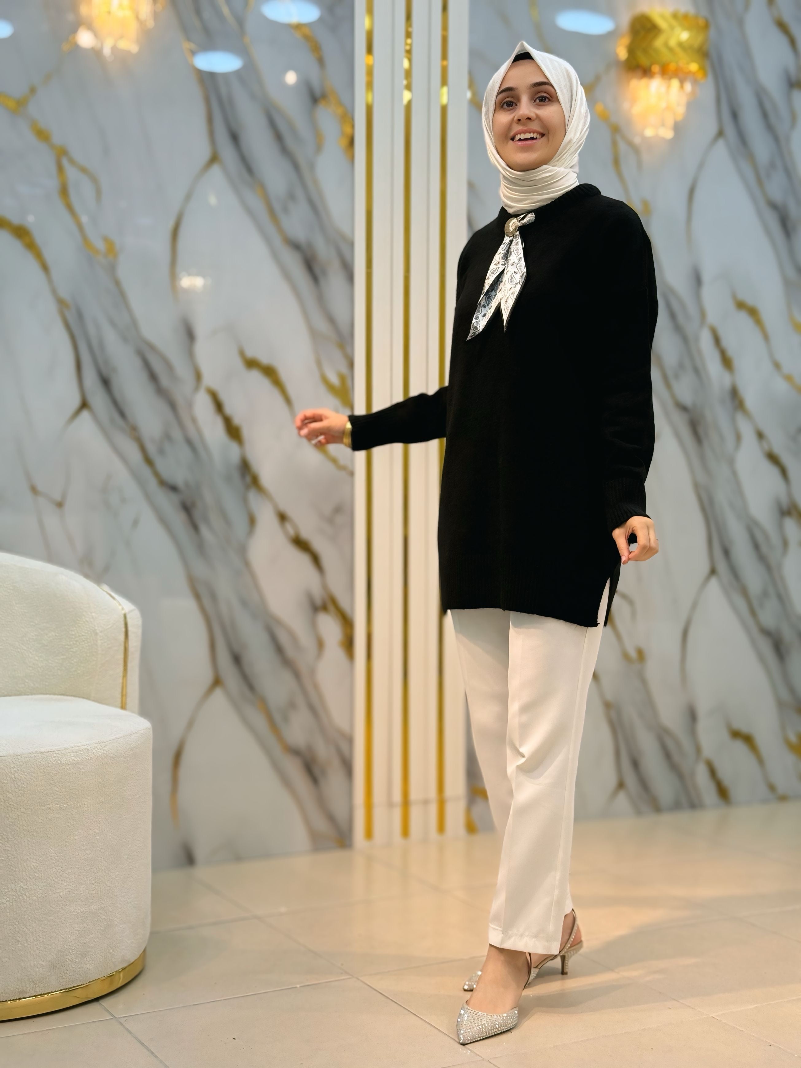 NY MEHLİKA ÖNÜ ÇİZGİ DETAY YIRTMAÇLI UZUN SOĞUK İP TUNİK 35244