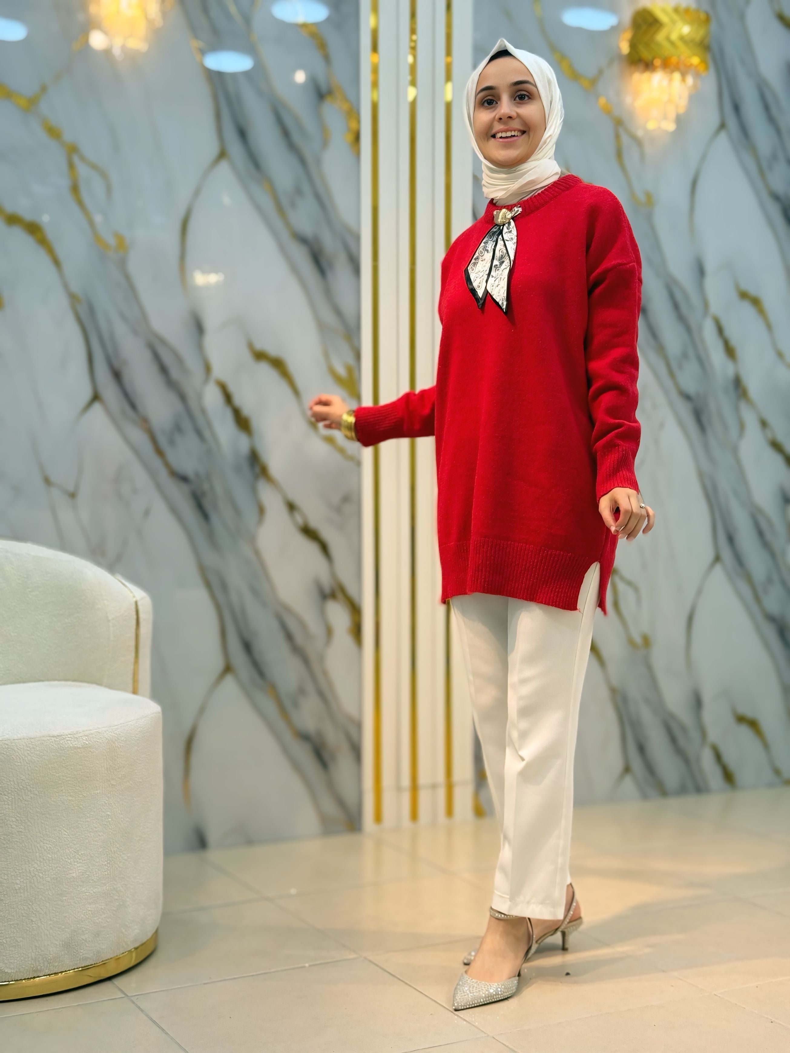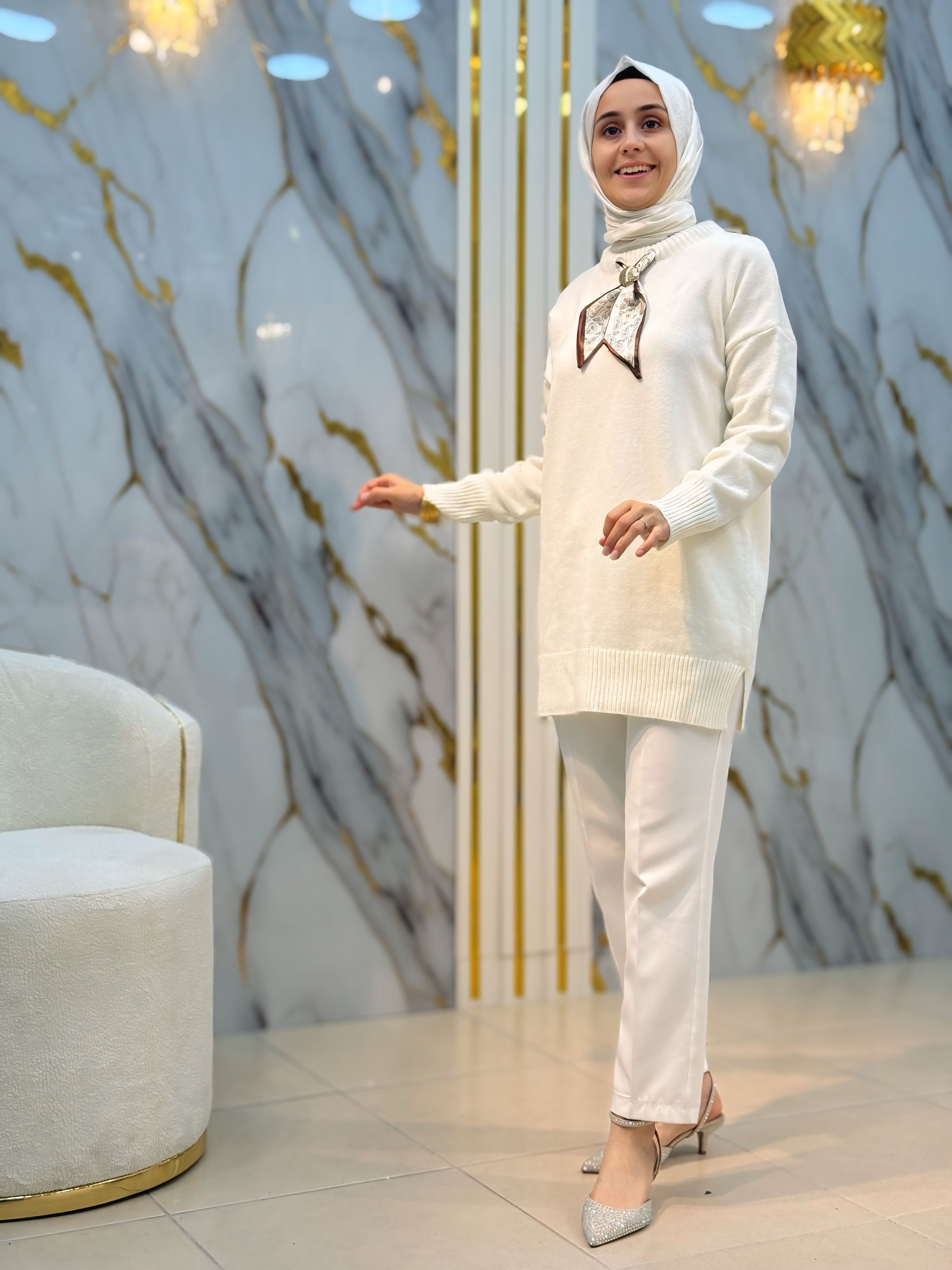 NY MEHLİKA YAKA TAŞLI KOL DANTEL VE İNCİ DETAY SOĞUK İP TUNİK 280