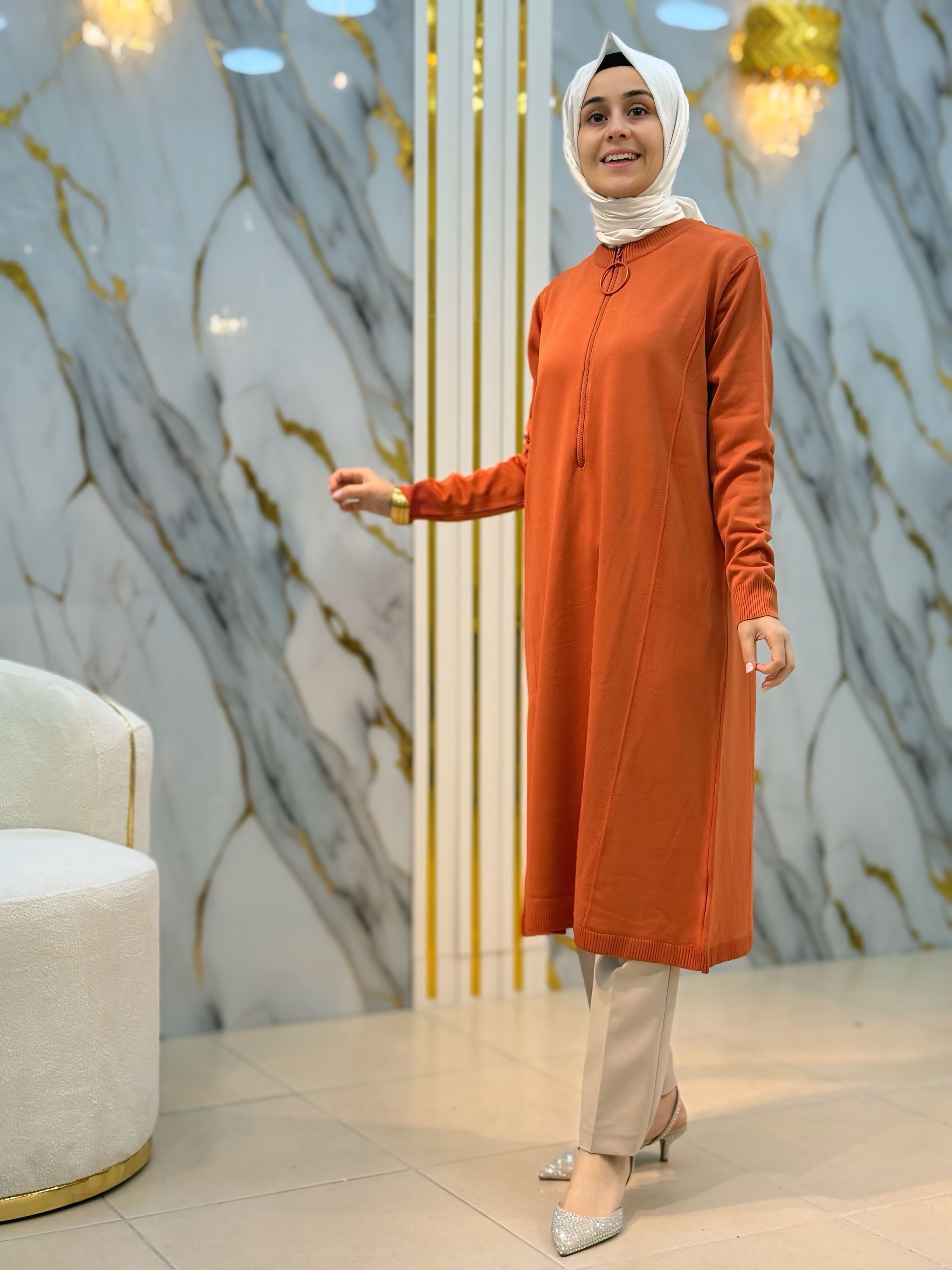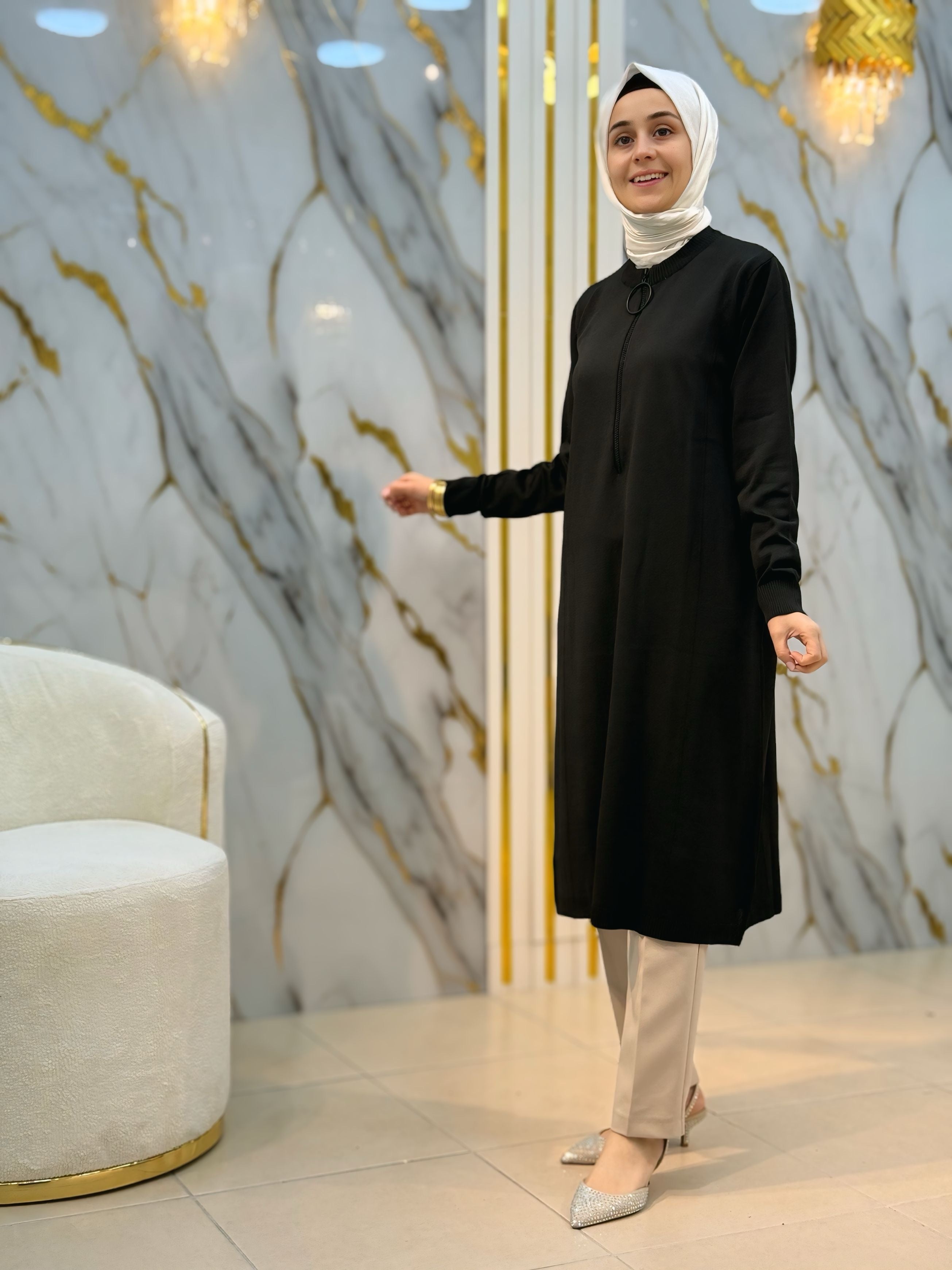 NY MEHLİKA YAKA FERMUAR VE ÇİZGİ DETAY SOĞUK İP TUNİK 35338